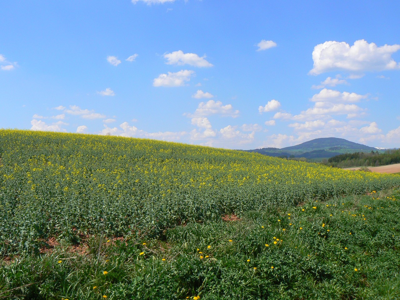 Bohužel má cesta nevede přes žádné místo, kde by se dala vyfotografovat louka, plná pampelišek a v pozadí Kotel se zbytky sněhových plání.