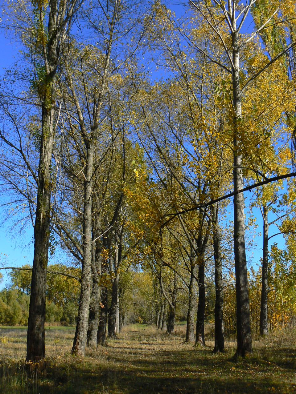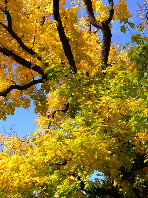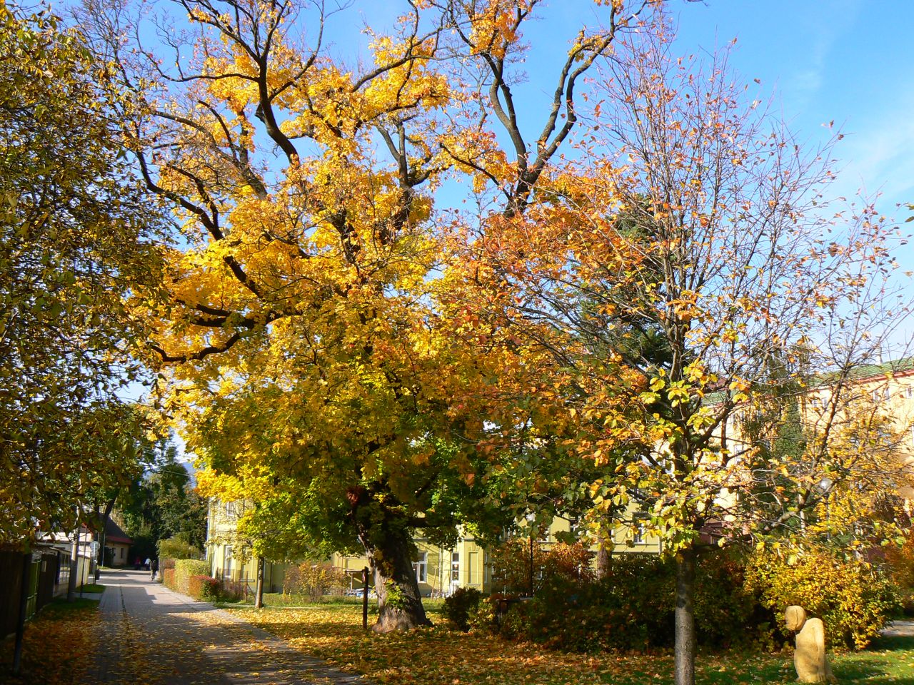 Topoly v jeho okolí si ještě udržely zbytky zlatých listů...