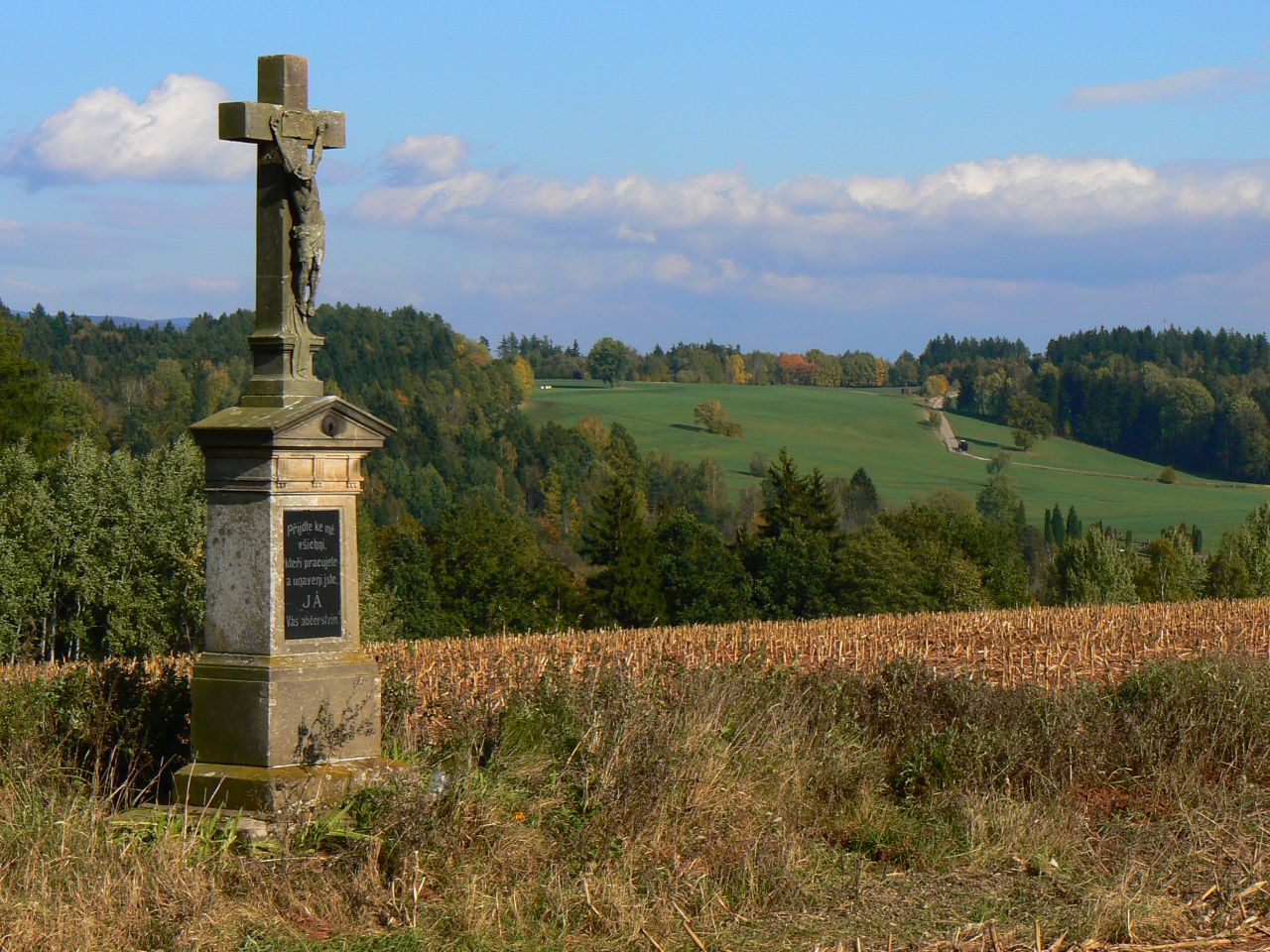 Máme tu nejkrásnější podzim, jedno z mých nejoblíbenějších období roku - nádherné, ale smutně krátké období křišťálových výhledů a barev, ze kterých přechází zrak. Období tepla a vůní. Ve čtvrtek mě však nečeká toulání, čeká mě angličtina... v minulých dnech jsem si ale pohazoval v hlavě s tím, že by obojí šlo spojit - utéct z práce o dvě hodinky dříve a jít pěšky po pohoří od samoty Příčnice ke kapličce nad Klášterkou, přes slemenskou silnici, kolem kříže Luisy Ertelové a rozcestí Na Poště do Hostinného. Dnešní počasí však tento pán hatí - od rána se nad horami válí temné mraky a občas i prší. Čeká mě tedy místo toho normální cesta autobusem, ale už už jsem myslel, že přece jen snad budu muset jít pěšky - vypravoval jsem se z práce jak chudý král do boje a na autobus to pak musel vzít hodně ostrým klusem. Naštěstí jsem to stihl a mohl tak vyrazit vstříc vodám hodiny angličtiny.