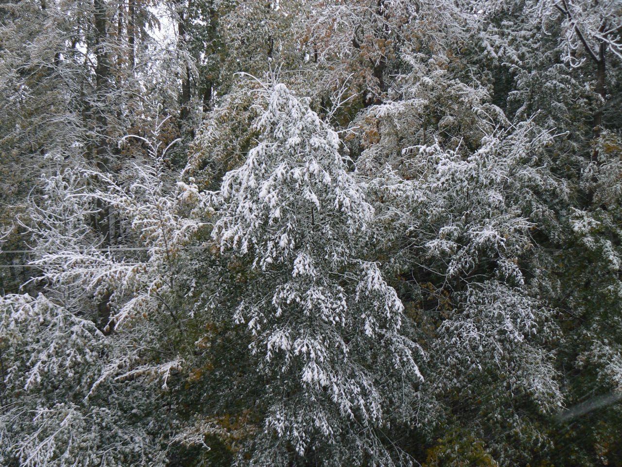 Leč všeho do času. I když se nám zdálo, že tenhle krásný, teplý podzim snad nikdy neskončí, příroda se ho rozhodla před koncem října náramně rázně uťápnout. Připluly temné mraky, začalo vát studeně od severu... a než jsme se nadáli, přišla sobota 27. října a na celou naši zemi od Krušných hor až po Beskydy se sypal sníh. Země však nebyla promrzlá, tak se udržel jen na kopcích nad Vrchlabím a na horách. Snad se ještě oteplí. Na zimu je ještě času dost.