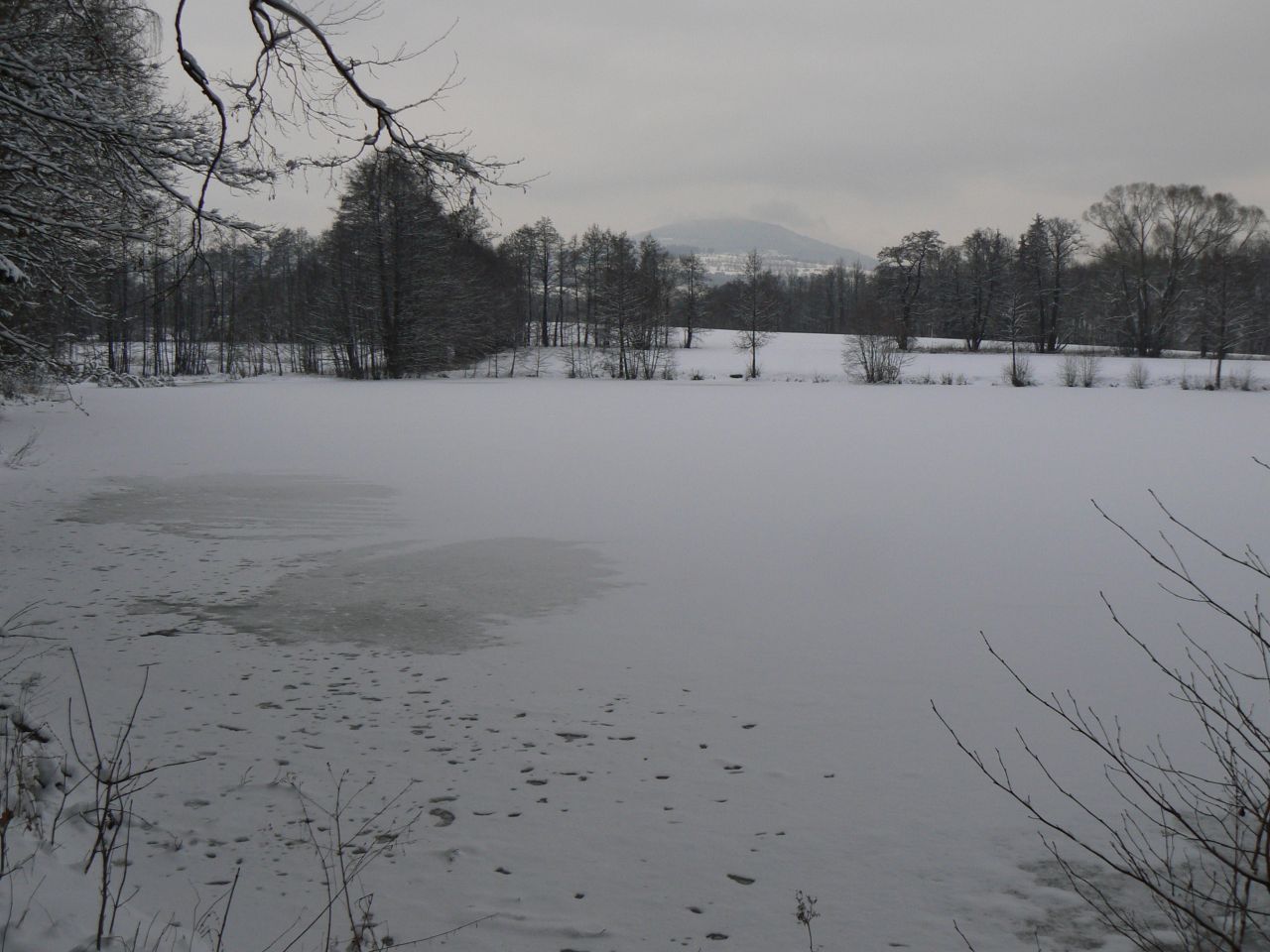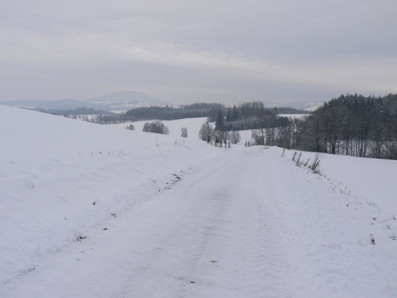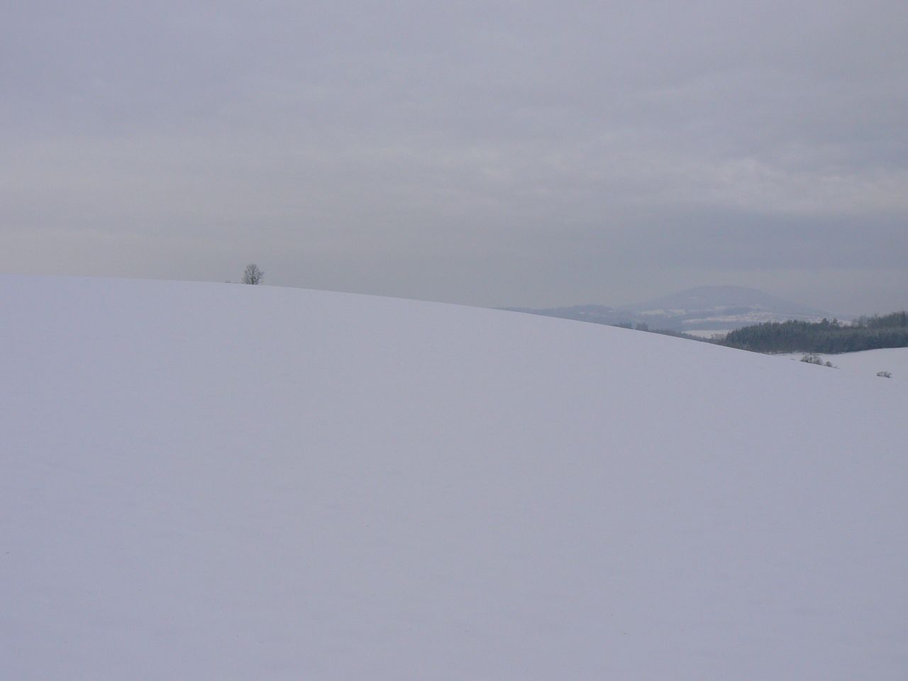 Práce mi šla od ruky dobře a navíc mě povzbuzoval i pohled z okna - sluníčko se nám rozzářilo a hory zářily proti nebi jako mrazivý bílý přelud. Měl jsem z toho radost - foťáček byl dneska v akci a hned jsem si naplánoval, že půjdu domů pěšky přes kopec. Jenže do 14. hodiny se stihlo úplně zamračit... ale přesto jsem šel.