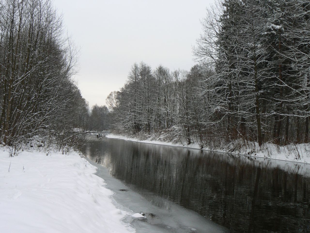 Potok Bělá je bystrý a tak ani na něj si zima ještě nepřišla, i když okolní les proměnila v zimní království.