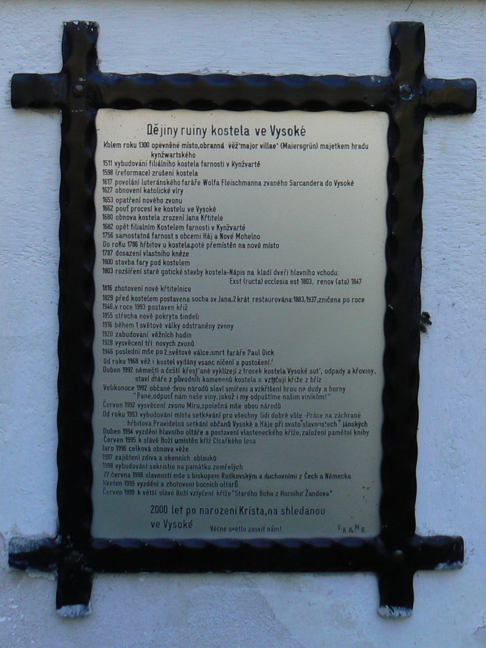 Zříceniny kostelů - obzvlášť ty skryté v lesích - bývají většinou hodně ponuré, ale kostel ve Vysoké takový není. Po letech chátrání se zřítil, ale přičinliví lidé z Čech i občané a potomci občanů, kteří tu kdysi žili a po válce podlehli odsunu, zřícený a zarostlý kostel vyklidili, zakonzervovali jeho zdi a udělali tak z něj zvláštní symbol - symbol lítosti nad historií, ale i symbol smíření. Nejpůsobivějším místem je však sakristie. Na její zdi visí několik nástěnek, plných starých i novějších fotografií, prostřednictvím kterých se lidé po smrti vracejí do svých dávných domovů, na které nikdy nezapomněli.