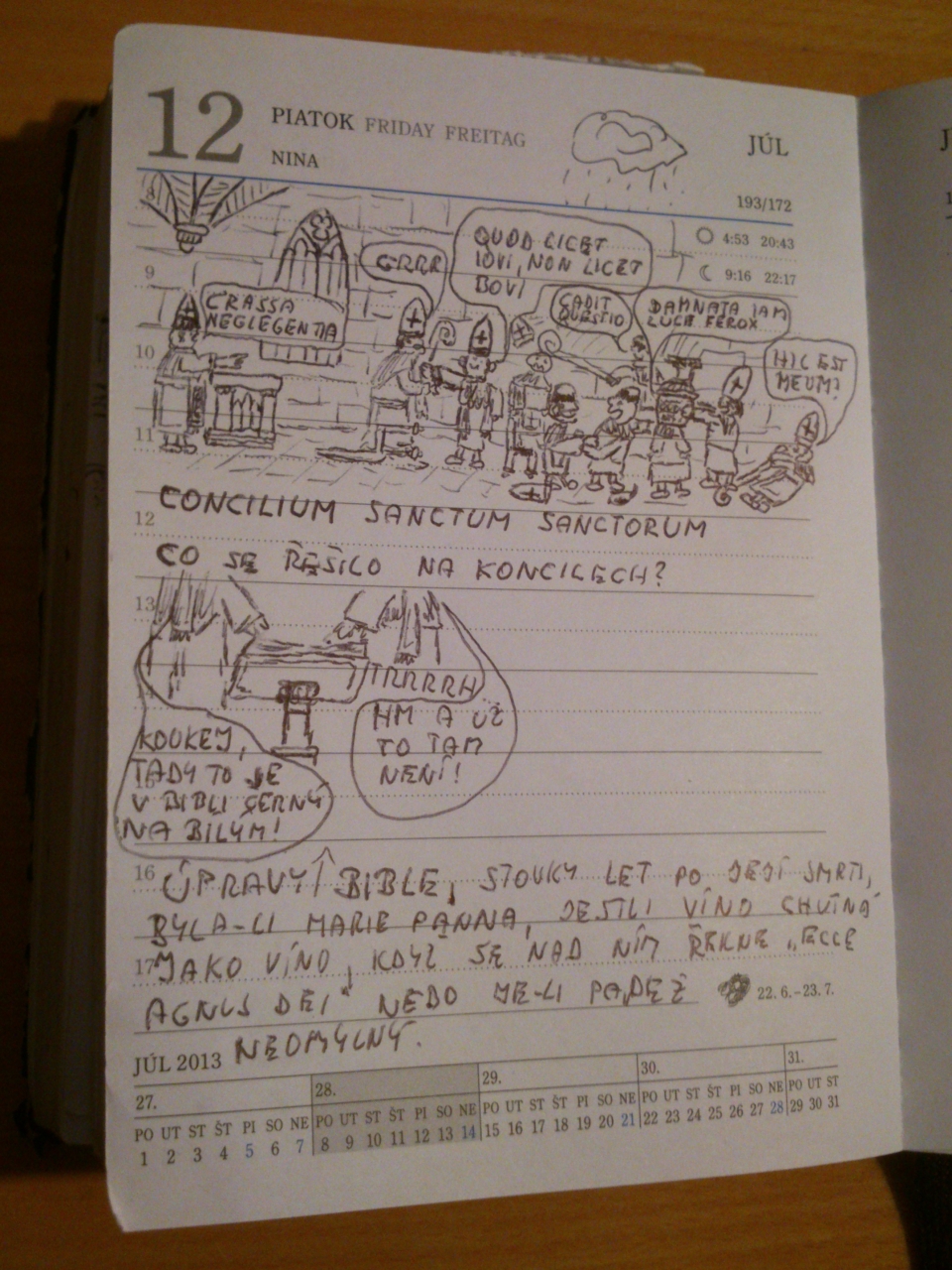 V diáříku se objevují i obrázky k zajímavým tématům, která se na mé stránce nakonec neprobírají. Například téma "Co se řešilo na koncilech".