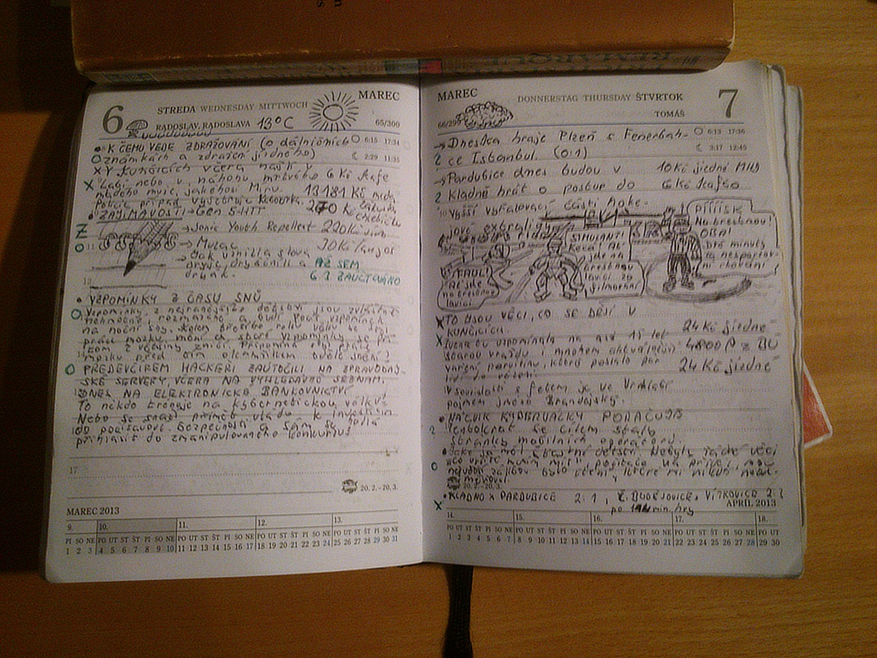 Kdybyste listovali mým diáříkem, určitě byste některé obrázky a zápisy poznali - že jste je viděli tady na mé stránce. Našli byste však mnoho a mnoho takových, které se na mou stránku nikdy nedostaly.
