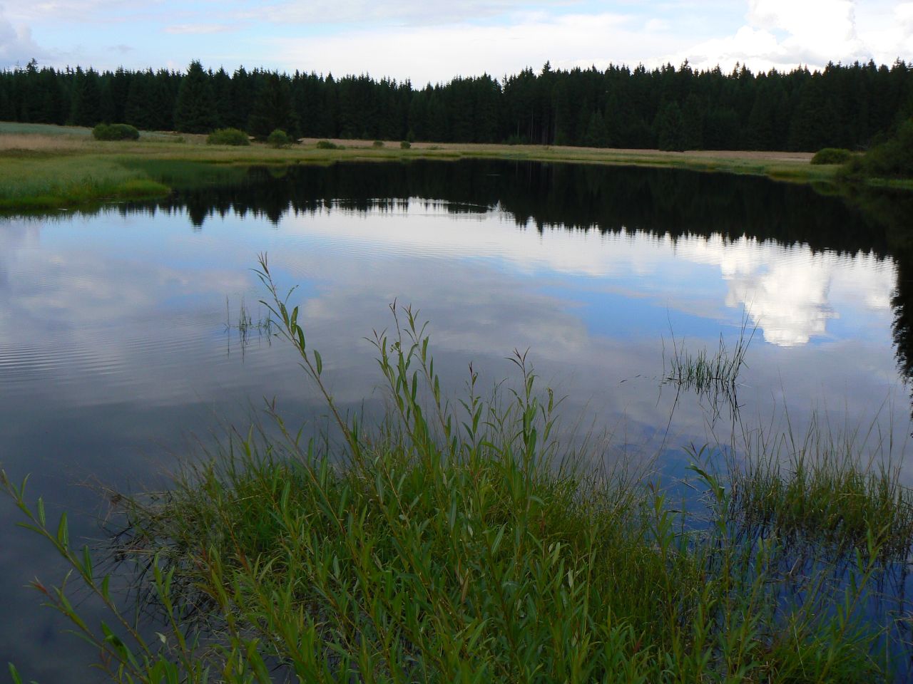 Teď je v něm hodně vody a proto nabízí úplně odlišné pohledy, než v jiné roční době, kdy téměř mizí mezi kopřivami, lopuchy, křídlatkami a jinou bujnou zelení.