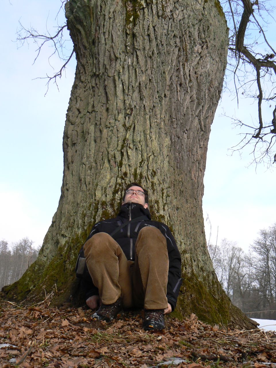 Je to pěkně, ptáčci tu zpívají, sluníčko už docela hřeje, tak neodolám a chvíli se tu oddávám příjemné předjarní pohodě na jeho mohutných kořenových nábězích.