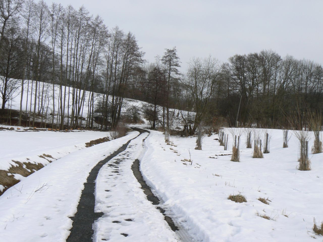 Cesta k dubu je však sněhem zatím úplně zakrytá, prošlapaná jen málo a sněhu je tu ještě poměrně hodně, tak se jde trochu hůř, ale zdaleka ne tak špatně, jako jindy v tenhle roční čas.