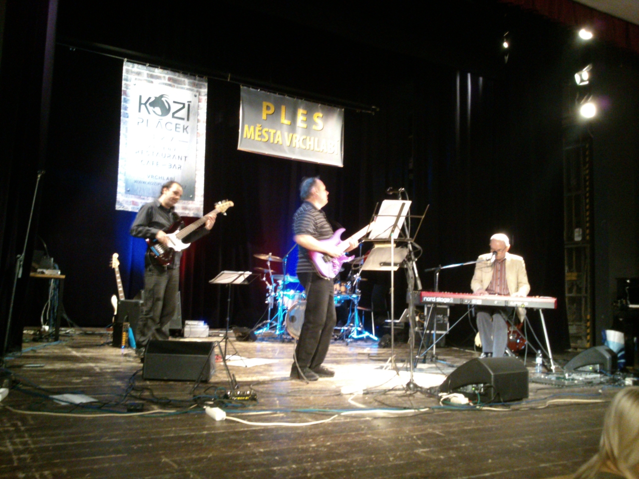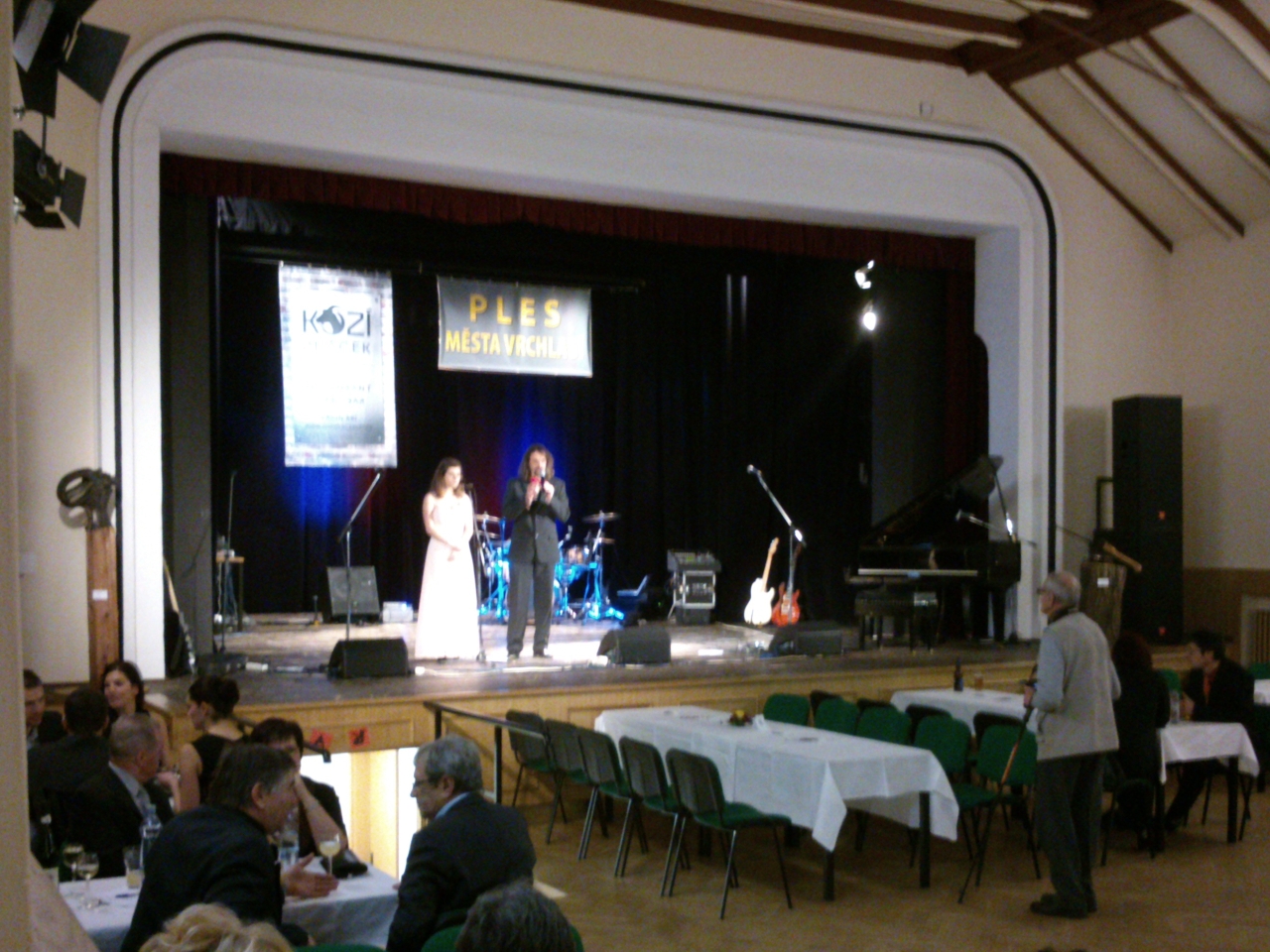 V předsálí už čekají mí přátelé, tak si chvíli povídáme a dáváme si pivo. Přesně v osm měl ples začít a opravdu začíná. Po pár úvodních slovech přichází na pódium naše známá vrchlabská skupina Jam & Bazar a spouští své pecky. Ne nadarmo má tahle skupina i druhý název "ABBA revival" - každá druhá písnička písnička je od ABBY a pokud mí přátelé zapomněli na to, která skupina patří k mým nejoblíbenějším, pak si rychle vzpomněli. Zpíval jsem si a řádil na oblíbené písničky, což jsou skoro všechny.