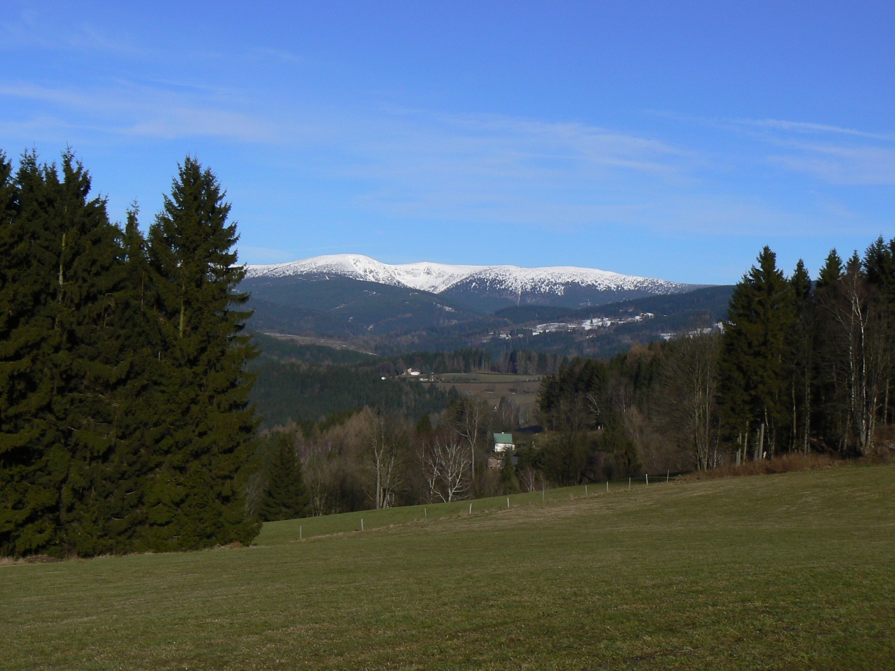 Z Benecka, ležícího vysoko v horách, je krásný výhled - obzvlášť na Kotel.