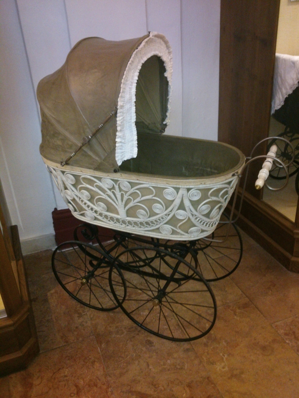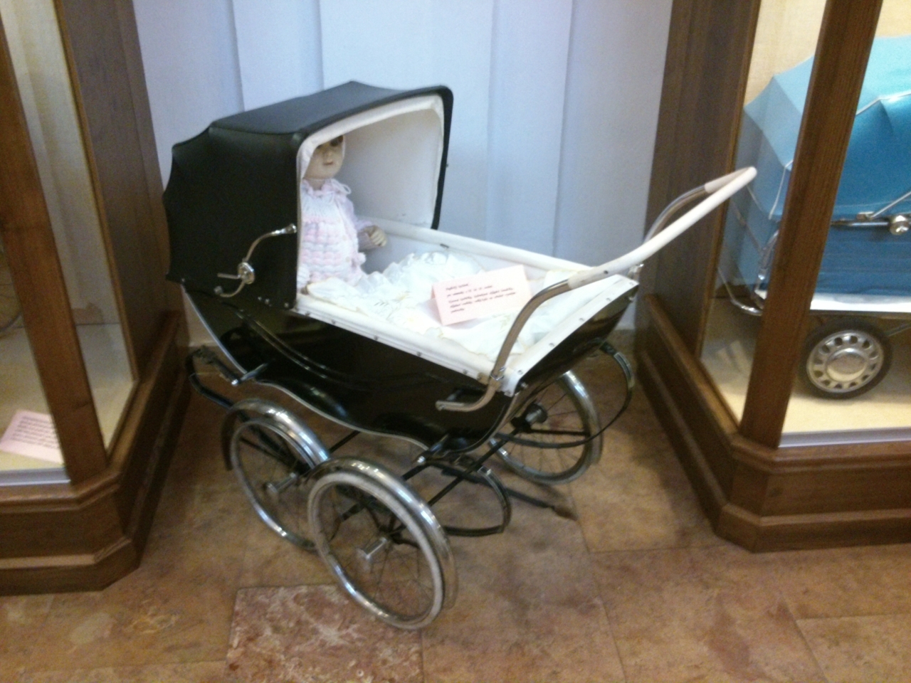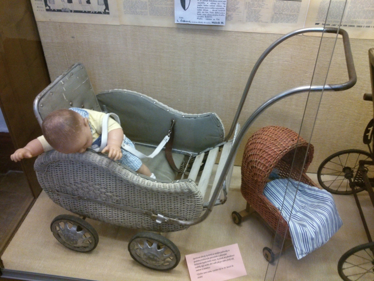 V Krkonošském muzeu v klášteře ve Vrchlabí beru za kliku a nic. Že by bylo zavřeno? Naštěstí na druhý pokus klika povoluje a za pár chvil už míříme do křížové chodby, v jejíž části je stálá výstava se všemožnou všehochutí všeho možného. Nás však tentokrát zajímá opačná část - výstava o historii kočárků.