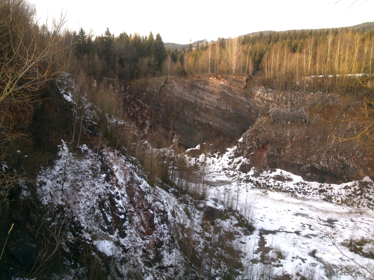 Opuštěnou část lomu v Černém Dolu zlatí paprsky zapadajícího sluníčka.