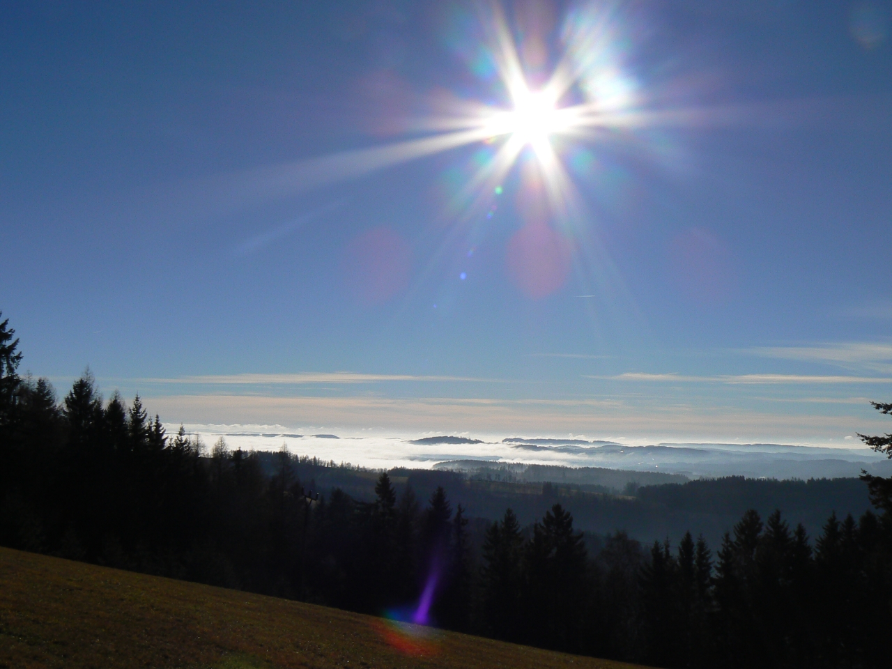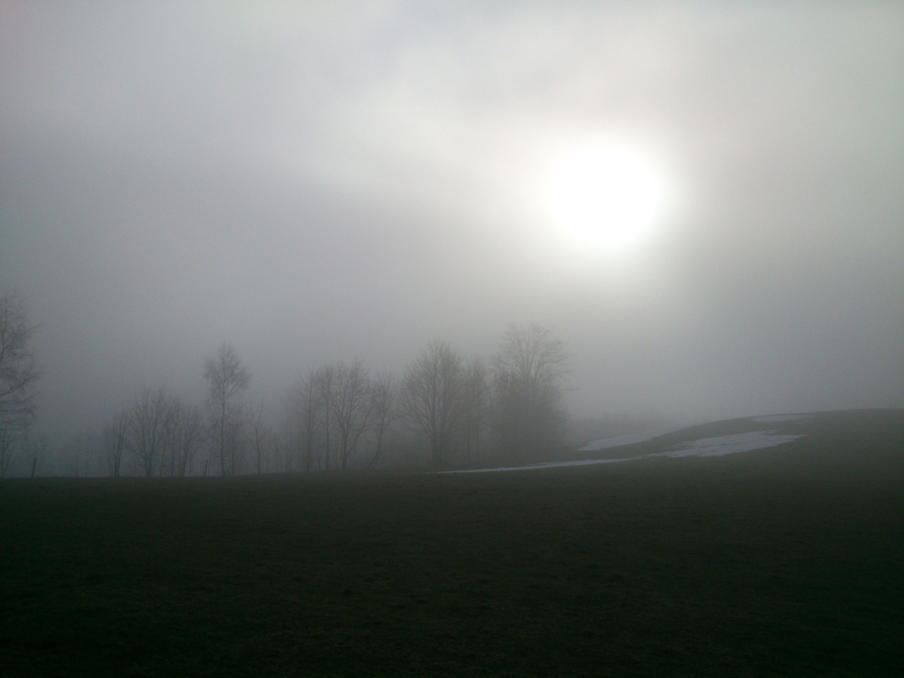 Skrz mlhu začíná svítit sluníčko stále více a více.