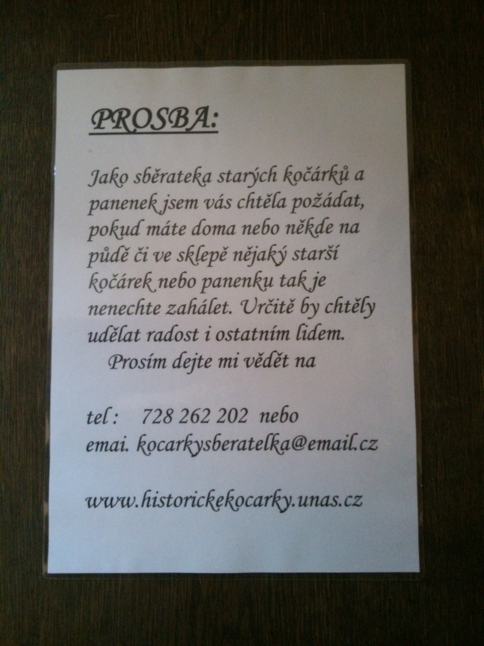 Na závěr ještě dvě prosby od paní Věry Čížkové...