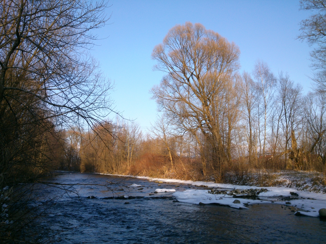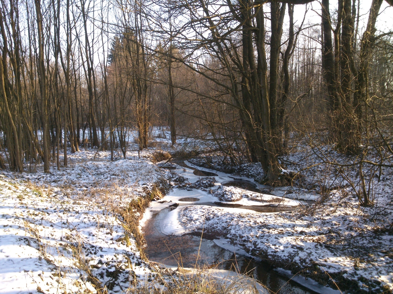 Život mi však mírně na téhle cestě zkomplikoval život zledovatělý můstek přes Bělou - neodvážil jsem se po něm přejít a místo toho jsem přeskočil Bělou, ale na břehu se mi smekla noha, tak jsem nedoskočil. Naštěstí na okraji byl pevný led a tak jsem do vody ťápl jen patou a mokrou měl jen nohavici.