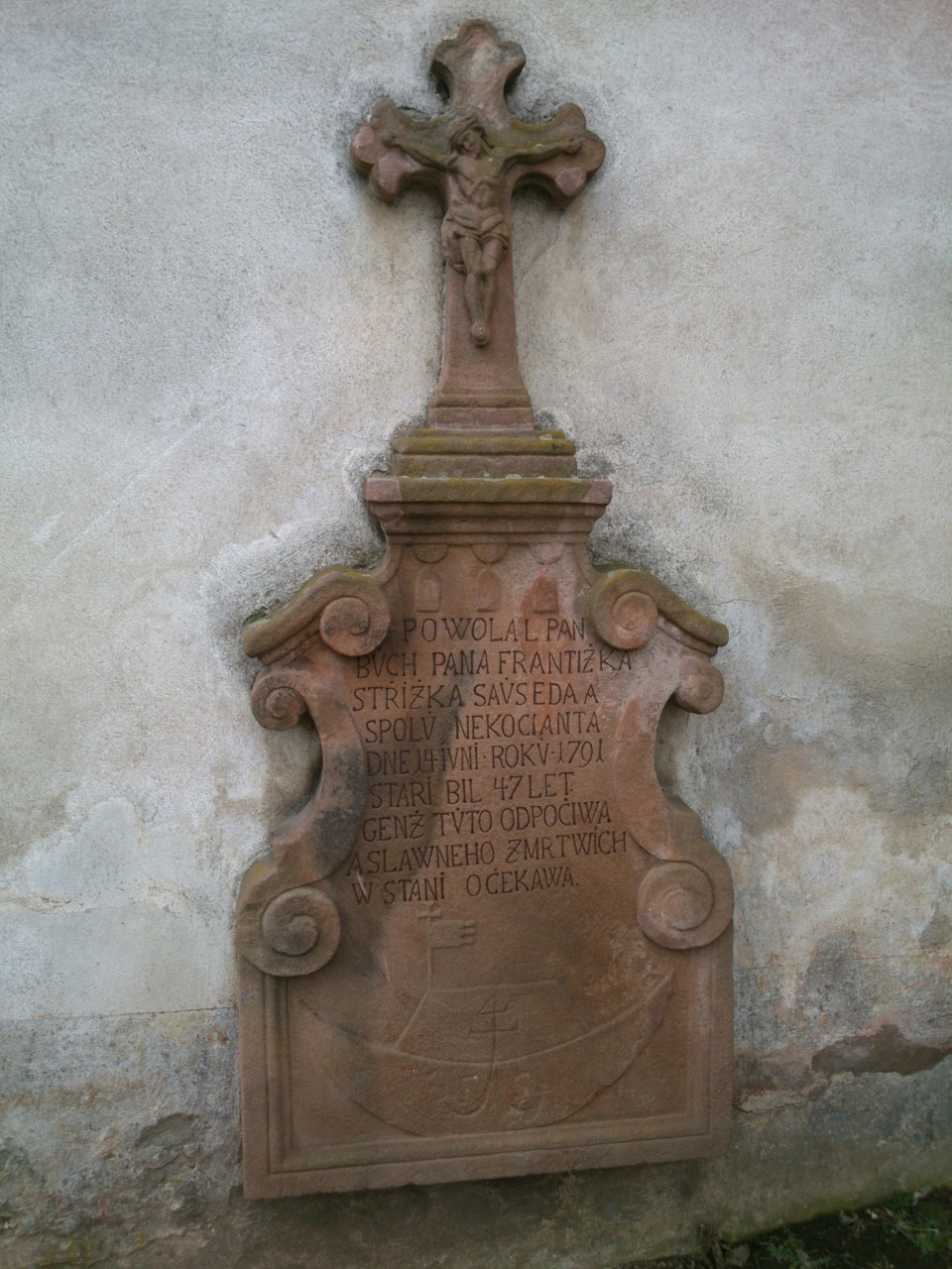 Tenhle patří obchodníkovi s plátnem Františkovi Střížkovi, po kterém kromě náhrobku zůstal i nádherný barokní statek výše po proudu Sovinky, který byl do nedávna opuštěný a zchátralý, ale někdo se pustil do opravy. Bohužel asi došly peníze a kromě oveček tam utichl všechen ruch.