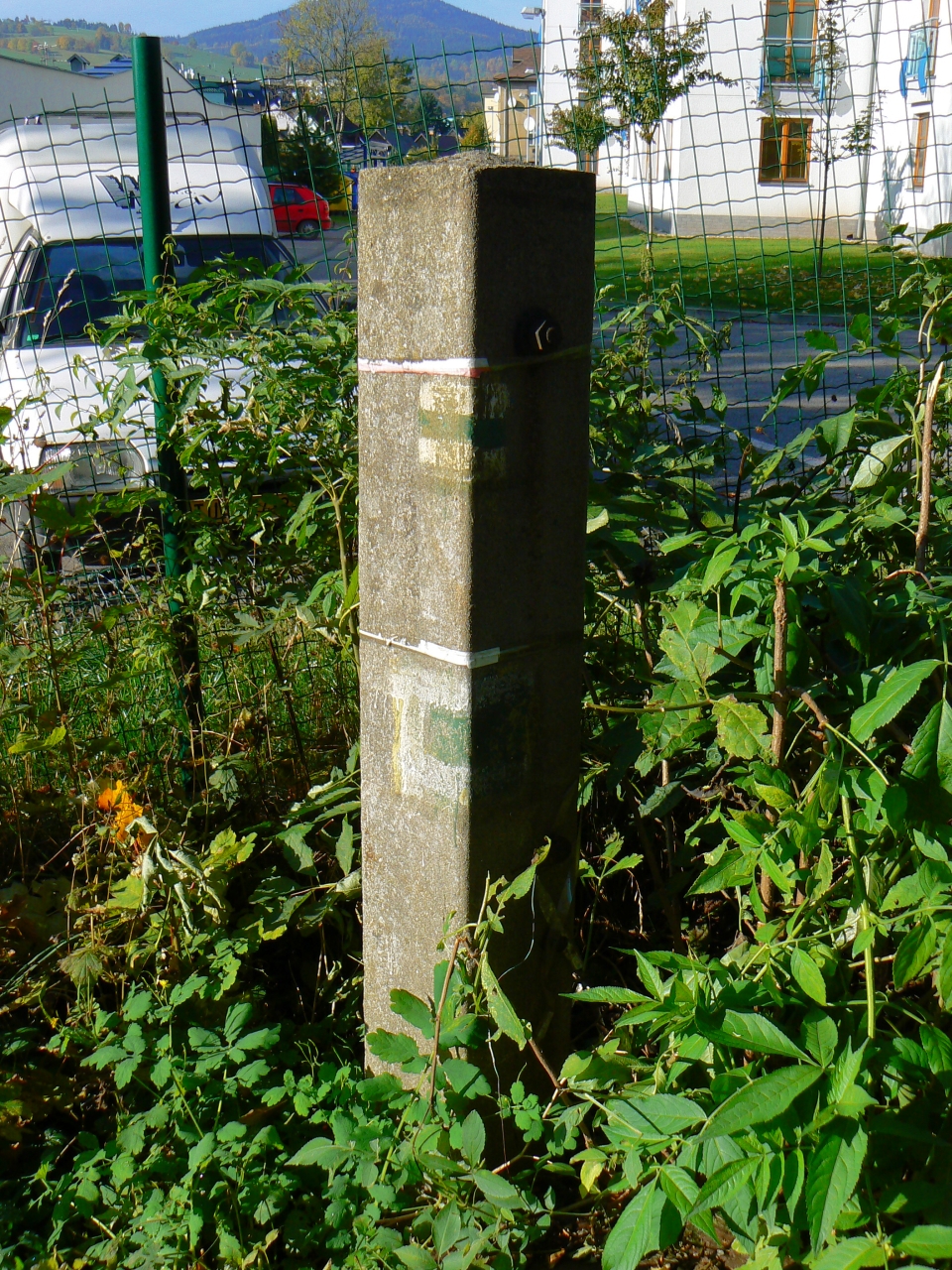 V čase, kdy jsem při několika cestách prohlížel každý sloup a strom mezi Vrchlabím a Lánovem, jsem si jednou vyrazil nad Valteřice a tam - na široké škvárové cestě, vedoucí mezi ohradníky, objevil na sloupu památku po úplně jiné žluté značce. Kdysi tamtudy nevedla tedy jen zelená jako to bylo dnes.