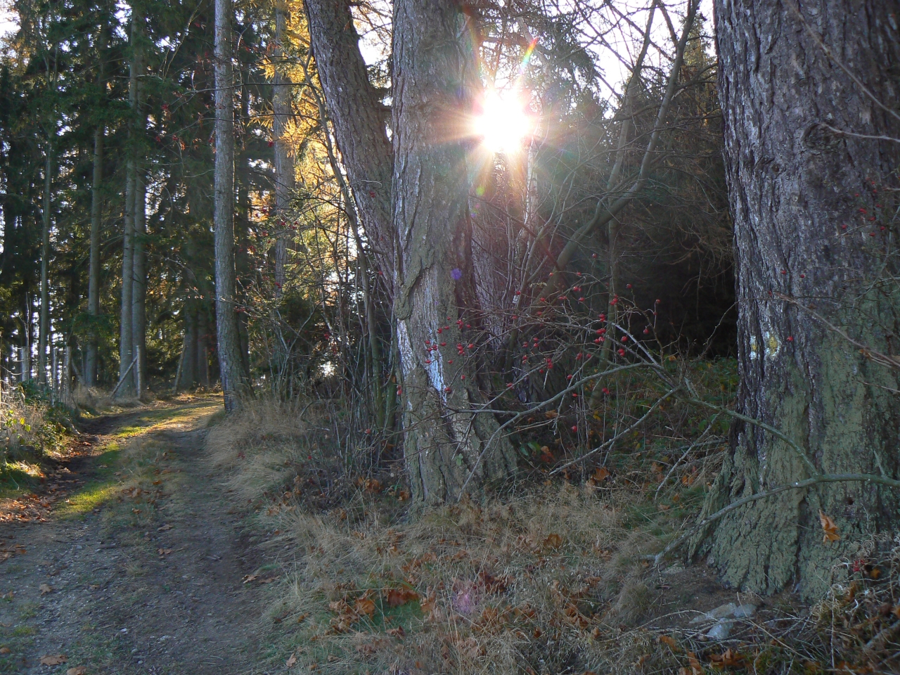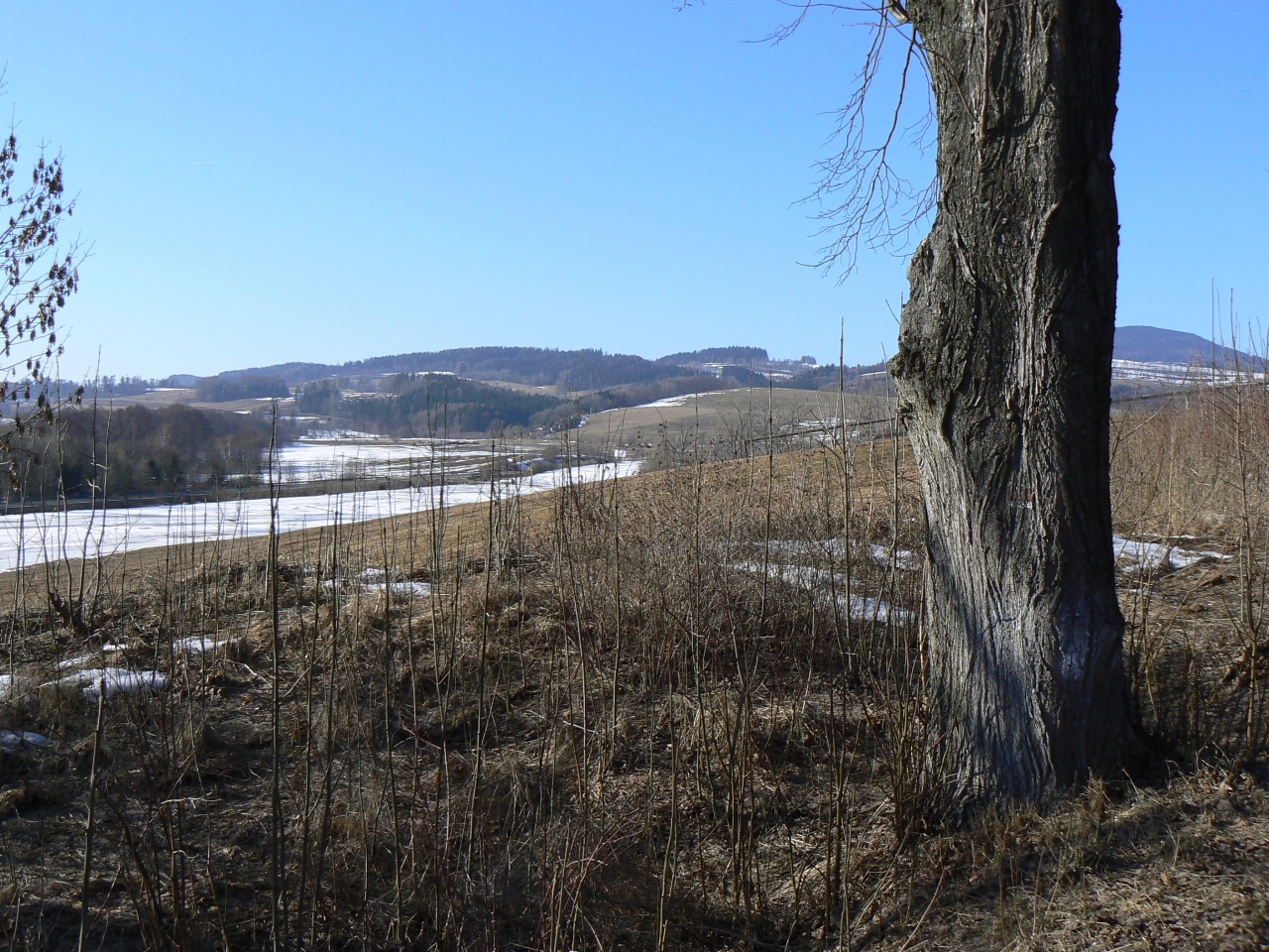Když jsem dorazil na stanici vlaku v Horní Branné, měl jsem tisíc chutí pokračovat dál do neznáma, ale sluníčko se pozvolna začíná kutálet k západu a tak se místo toho dávám zčásti podél a zčásti po zarostlé uvozové cestě směrem k Vrchlabí. Okukuju pečlivě každý silnější strom a těsně pod vrcholem stoupání je mé úsilí odměněno úspěchem - raduju se nad prvním nalezeným zbytkem zrušené červené značky. Další nacházím těsně před koncem uvozové cesty, ale pak se mi do cesty postaví zasněžené lány polí a mně se už nepodaří objevit, kudy značka vedla dál. Ale nevadí, příště to zkusím z opačné strany.