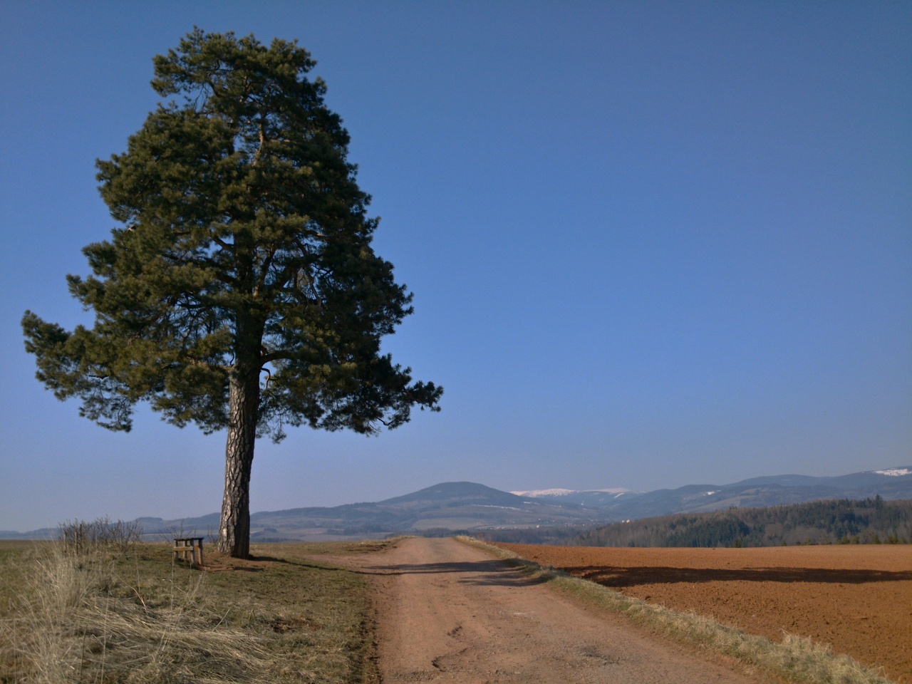 Čas však kvapí, proto si naposledy hladím její hodně členitou a příjemnou kůru, vyhřátou sluníčkem a voňavou, pak jí ještě mávám na rozloučenou a za chvíli už se ztrácím v dálce, zatímco Královna Podkrkonoší na mě ze své výše vidí ještě asi dva kilometry, až k lesu, zvanému „Na Lánu“.
