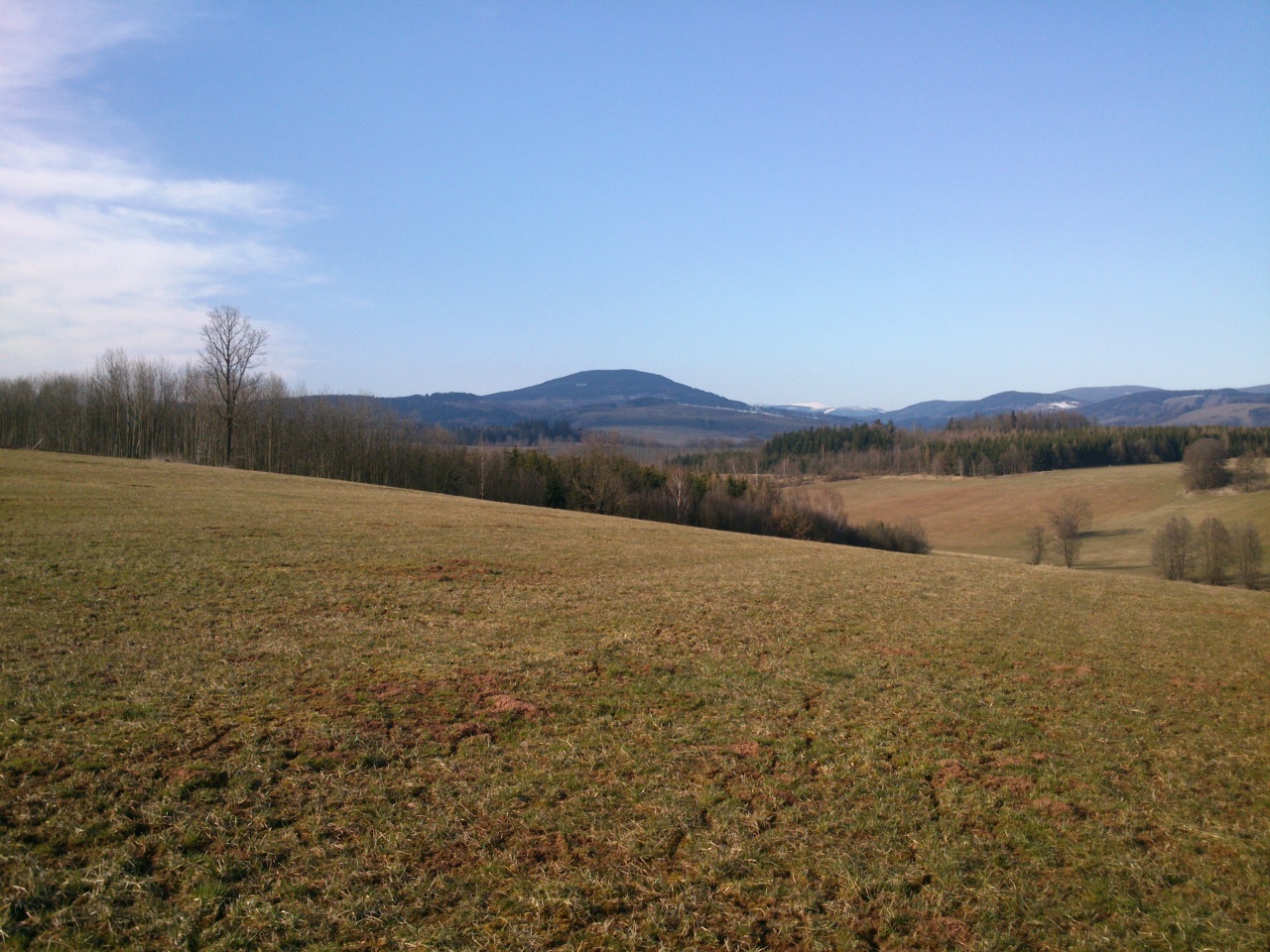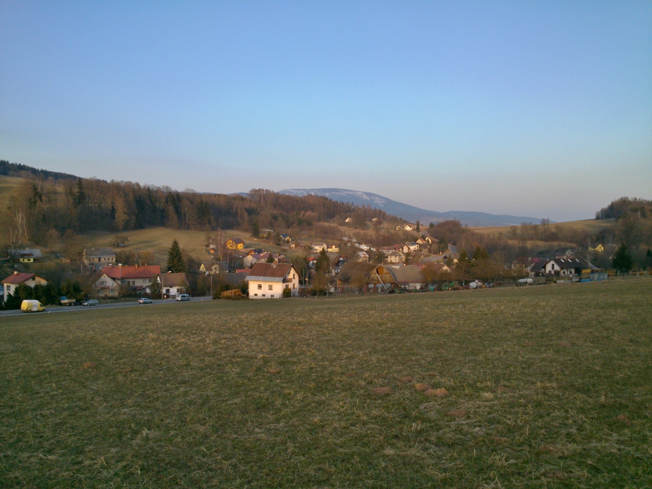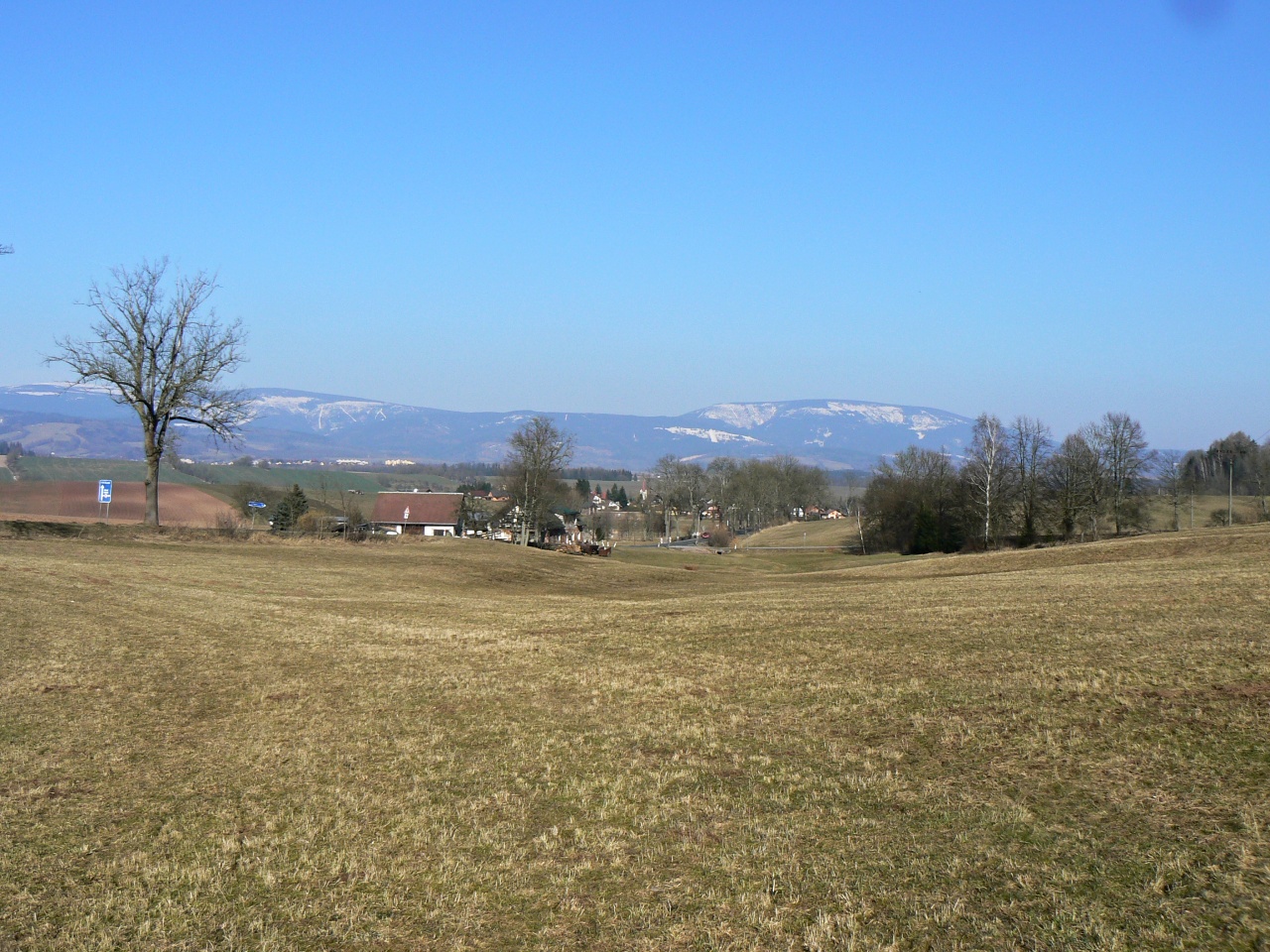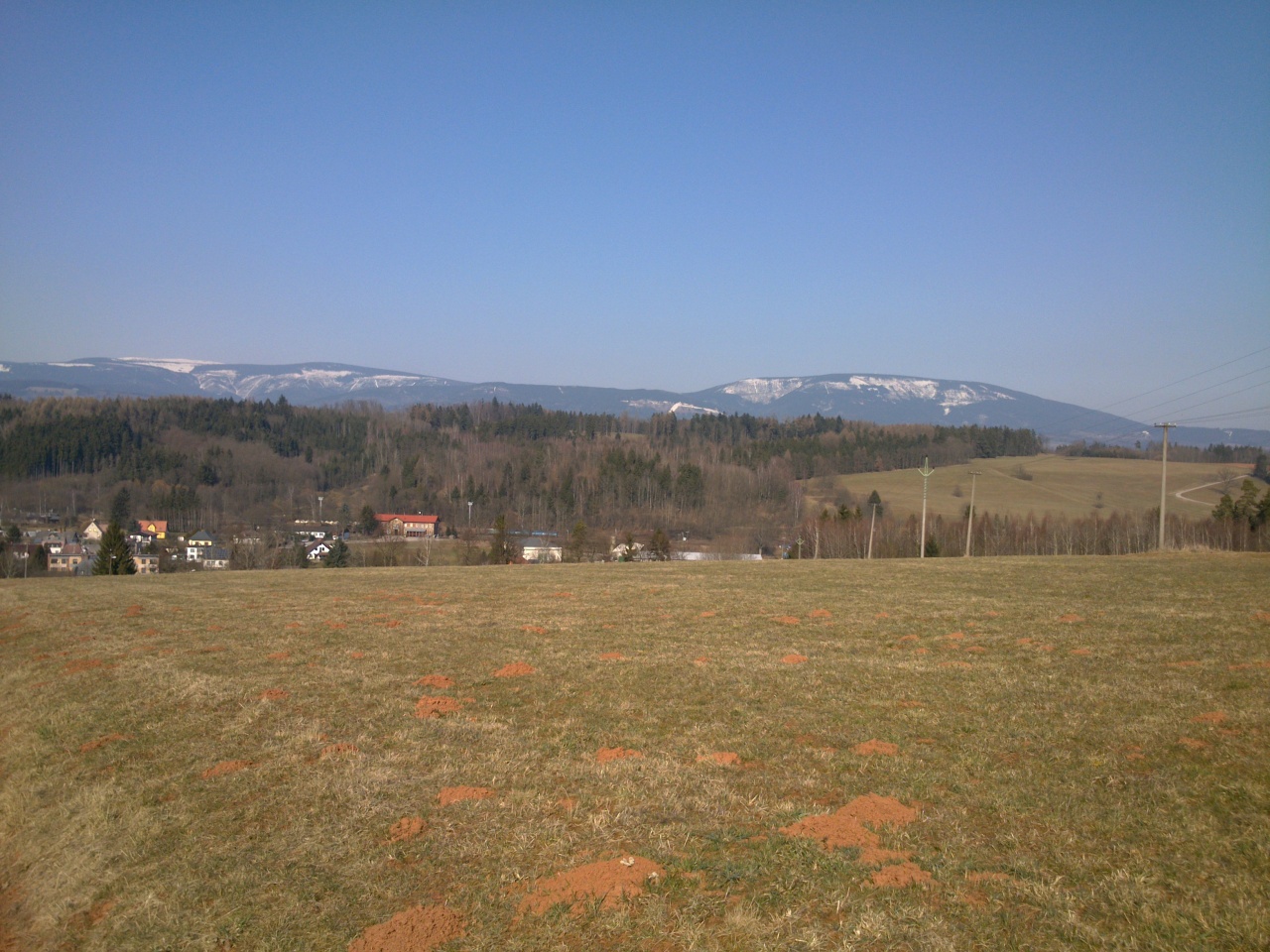 Do 14ky to může být od našeho podniku nějakých 10 kilometrů, to za ty dvě hodinky zmáknu jako nic. Vykračuju si zvesela, procházím Kunčicemi, po můstku přes Labe a brzy už se drápu na Příčnice. Odtud nemůžu alespoň pár chvil odolat dívání se na hory.
