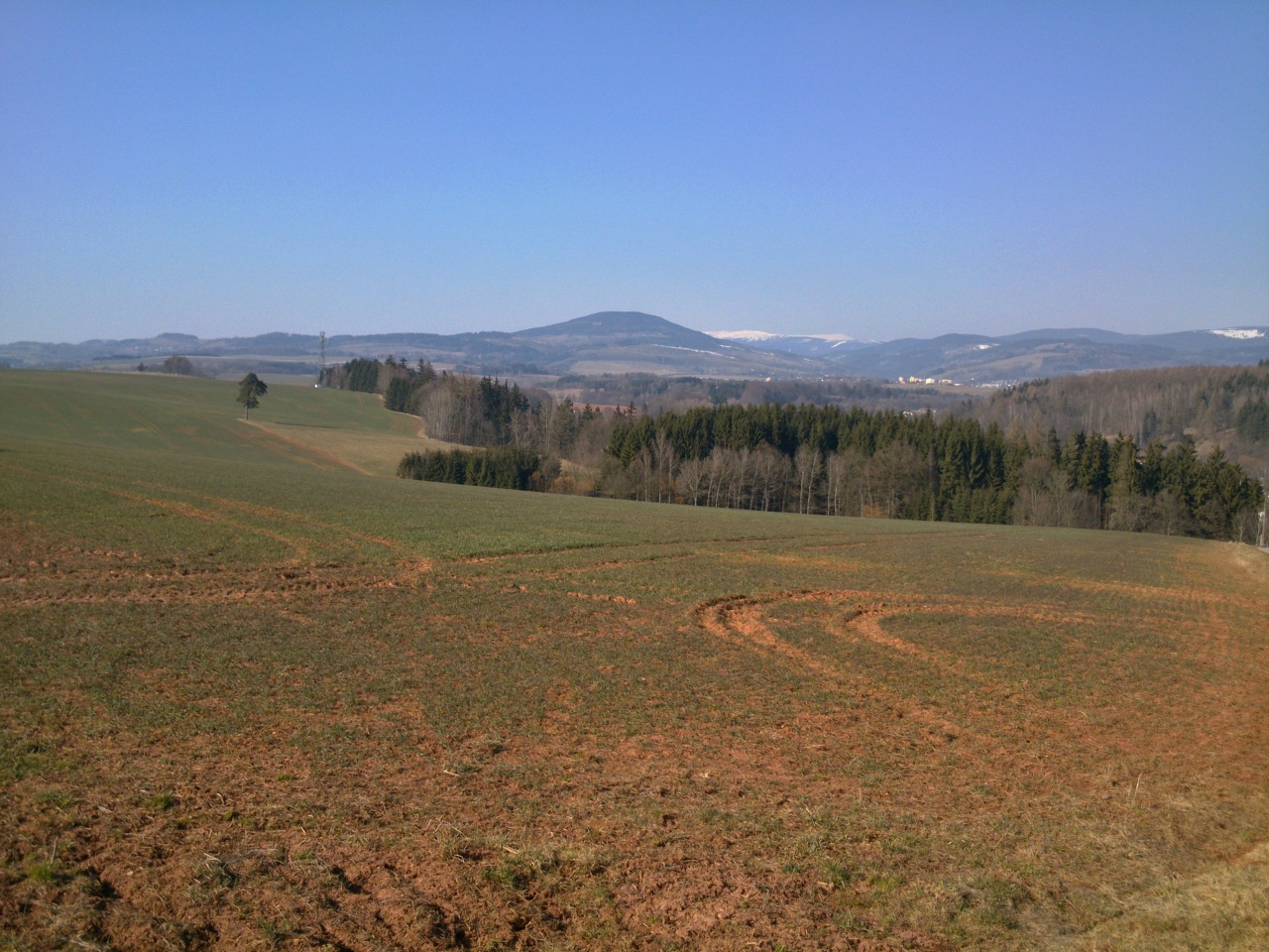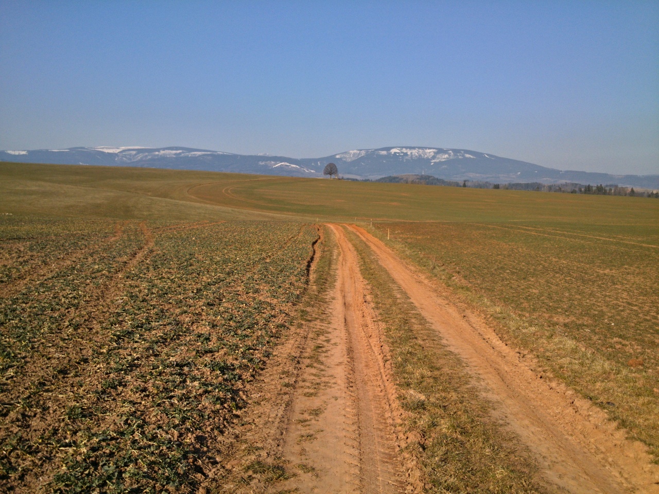 Putování po cestě Trhovici je krásné, je to jedna z mých nejoblíbenějších cest Podkrkonoším vůbec. Plná krásných výhledů, křížů, místo, kde se člověk dívá na svět z výšky a srdce je lehké. Dneska ale pádím jako vystřelený z děla a všechnu krásu míjím bez ohlédnutí. V lese Lánu dokonce nadávám jako špaček - traktoristé cestu rozjezdili tak, že to ocení jen divocí pašíci a protože ani jim se nechce jezdit takovým blátem, zajíždějí až do krajů cesty, které rozjezdí zrovna tak a jít už se dá jen trním a buřáním. Konečně je les za mnou a já si zdržení naháním zkratkou přes louku.
