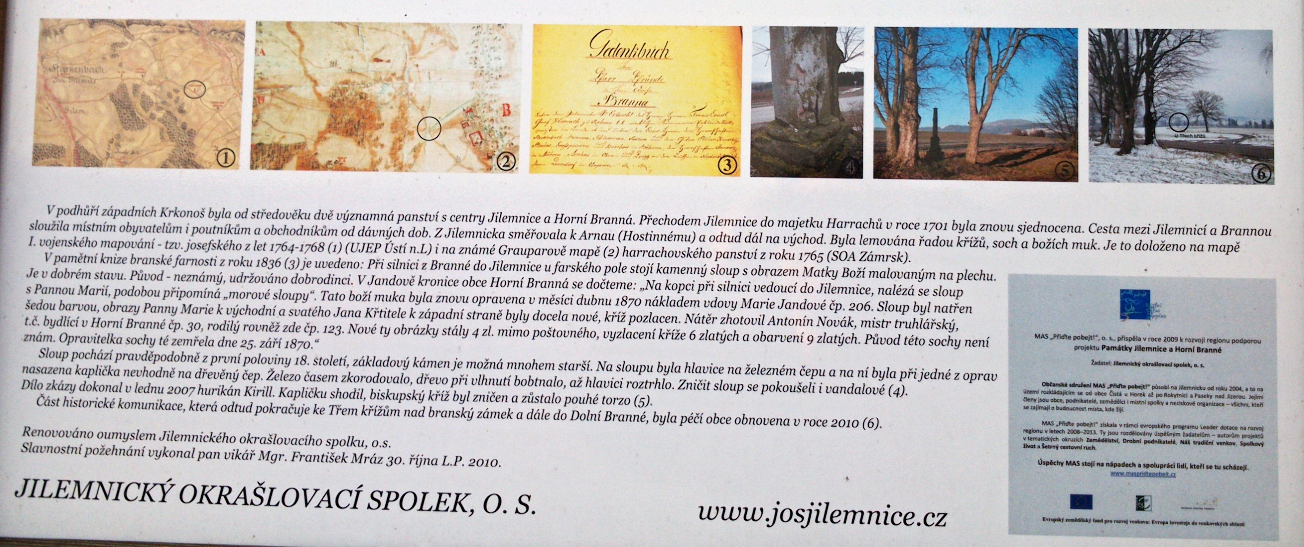Okolí Dolní a Horní Branné je pro mě rozdělené na dvě poloviny - tu mezi Brannou a Vrchlabím znám poměrně dobře, polovinu od Vrchlabí odvrácenou však mnohem míň - jsou tam cesty, sochy a kříže pro mě neznámé. Proto se nechám dovézt až tam, kde ze silnice Branná - Studenec odbočuje silnička na Kalnou.