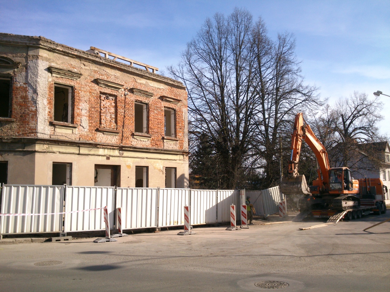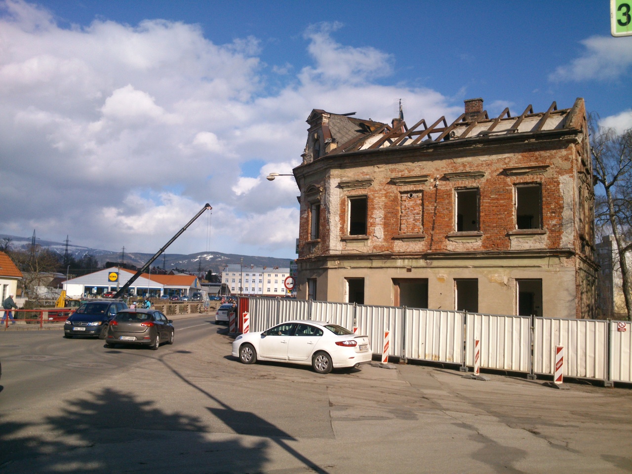 Protože však dům překážel stavbě kruhové křižovatky, město ho od majitelů vykoupilo, ti se odstěhovali a od roku 2012 byl dům prázdný. Většina oken postupně vzala zasvé, dvůr zarostl buřáním... až přišel letos začátek prací na novém mostu a hned na začátku došlo i na opuštěný dům.