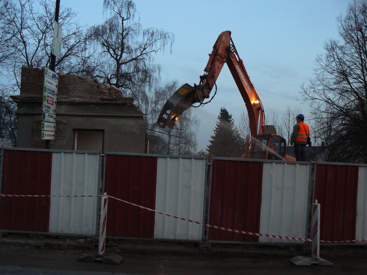 Už stojí jen poslední zeď, rameno bagru se hrozivě zdvíhá...