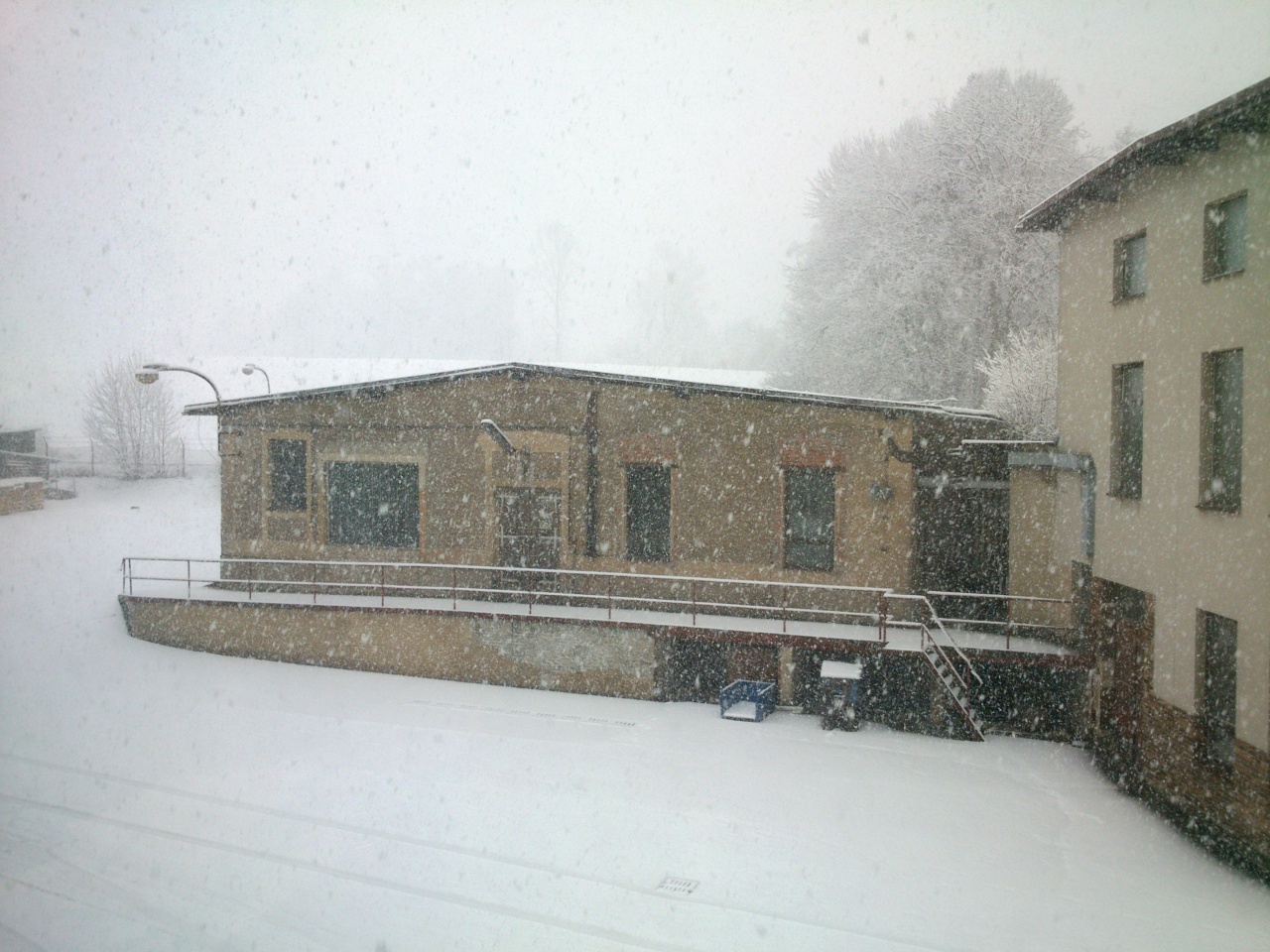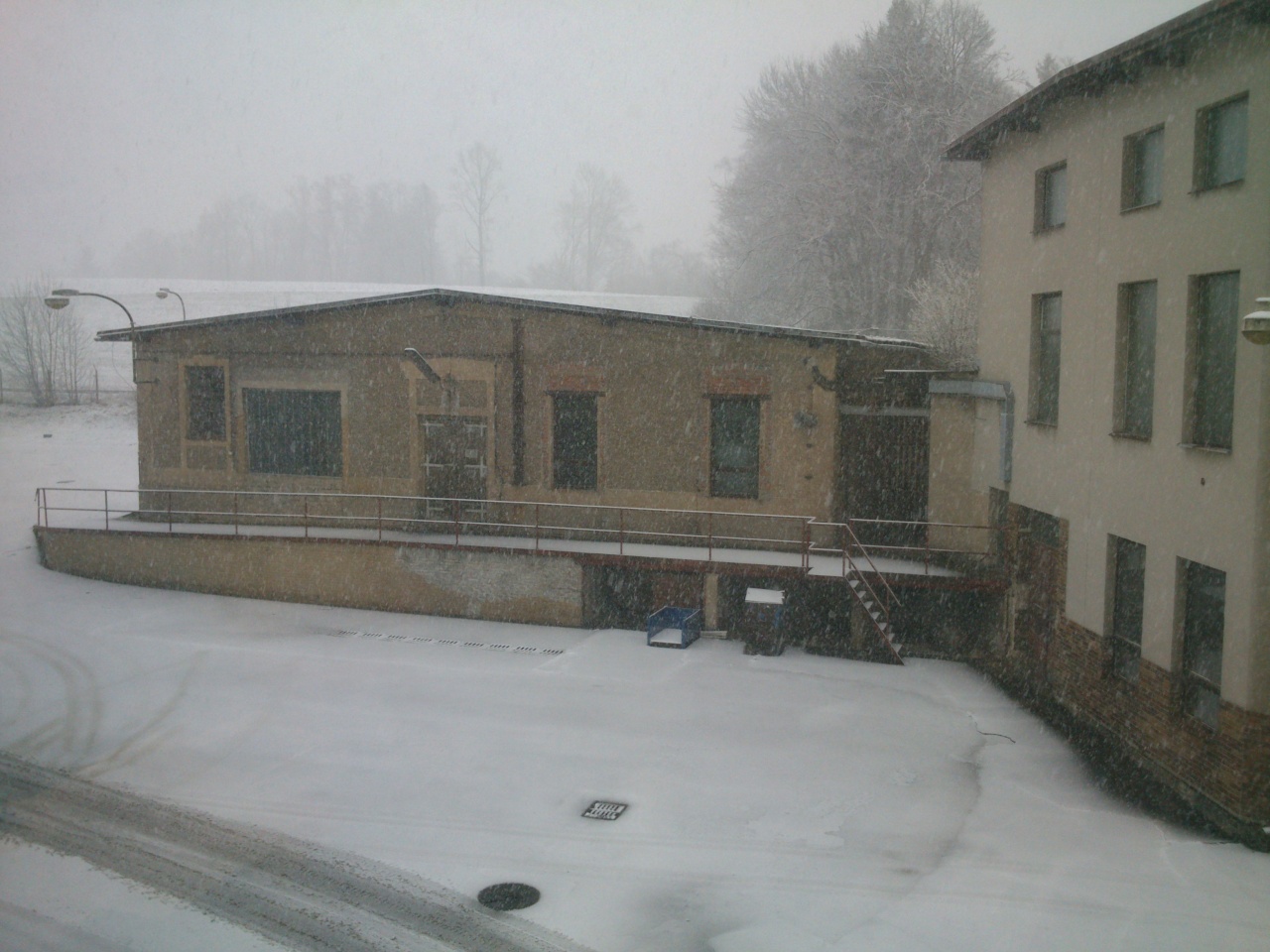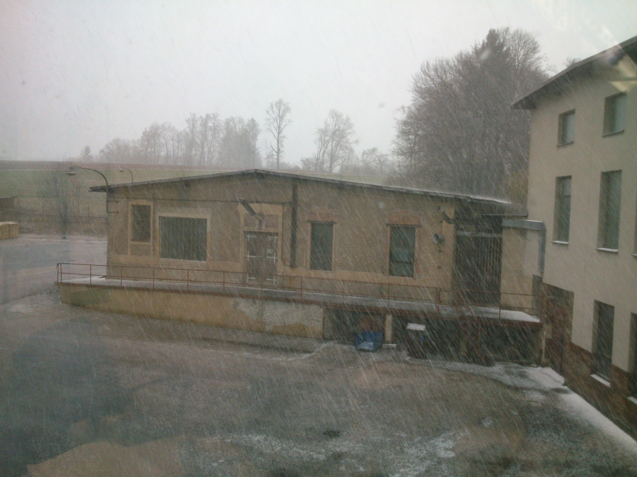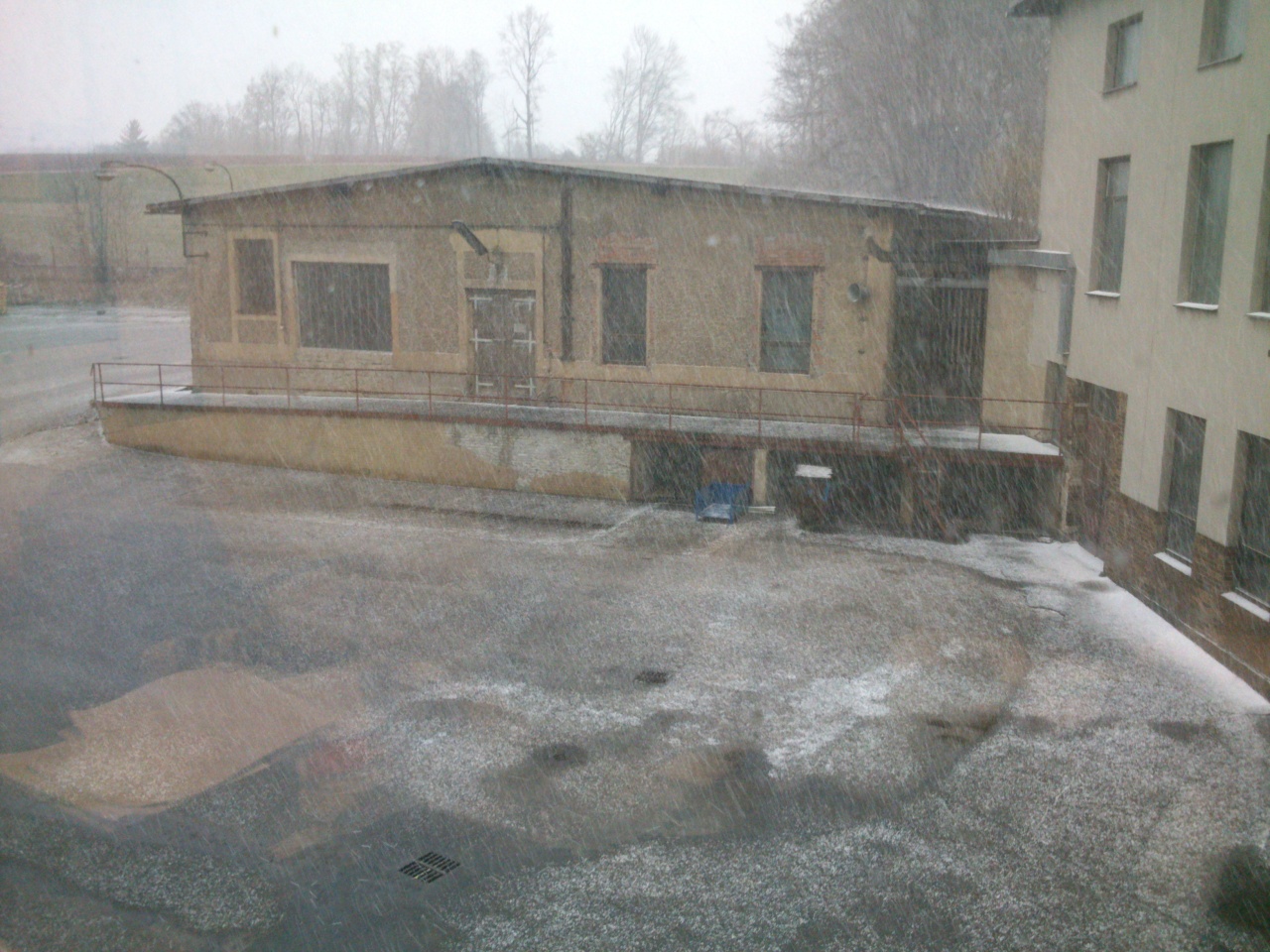 Naštěstí v práci nebylo práce tolik, takže se dalo pracovat v pohodovém tempu a jen se divit, co na nás Krakonoš dneska ze své jarmary na počasí všechno vyhazuje. Chvíli sněží...