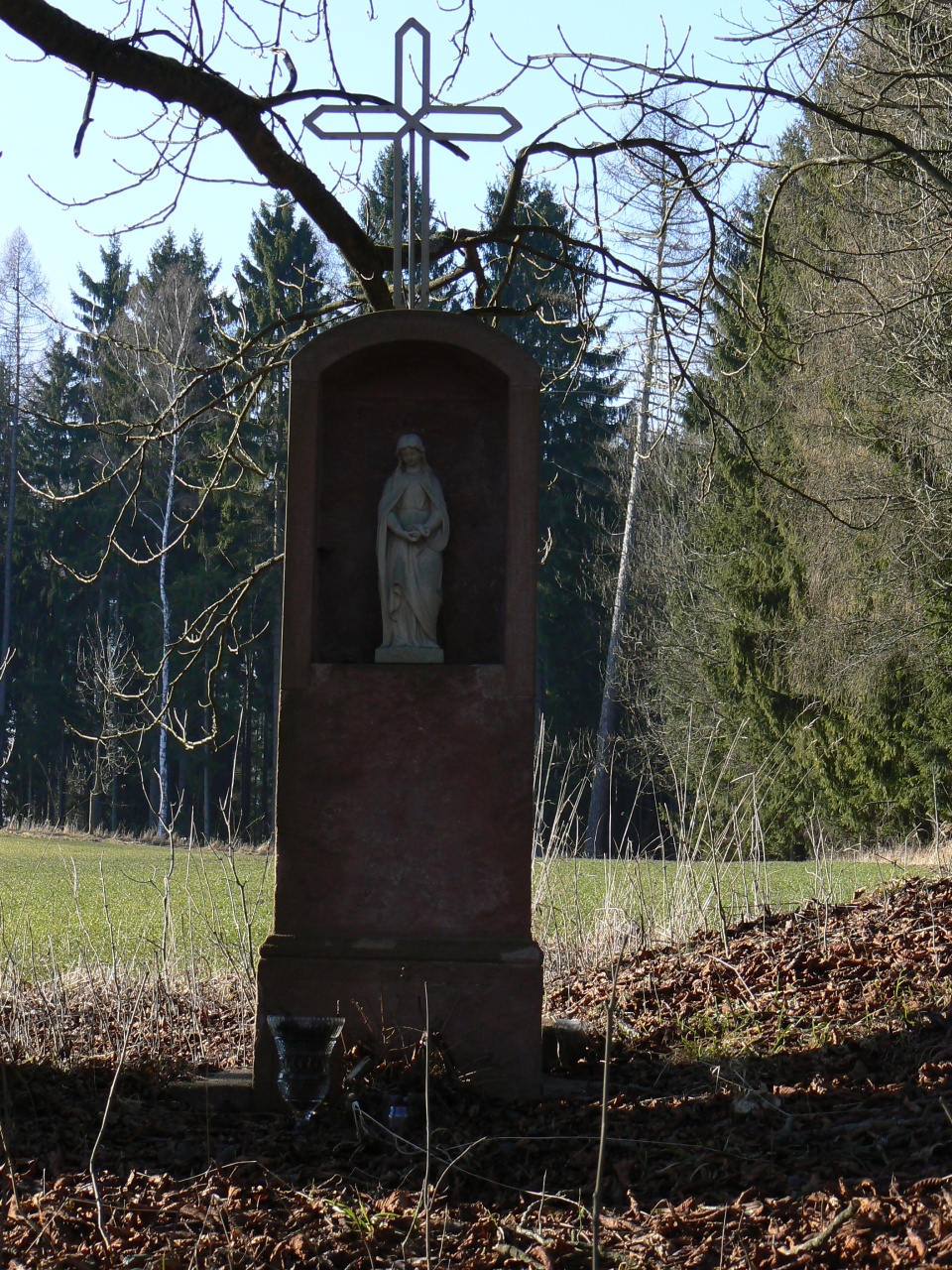 Reliéf Svaté Starosty - dívky, co si radši vymodlila plnovous než by se vdala za pohana a byla za to ukřižovaná - tu však už dneska nenajdeme, zanikl někdy kolem druhé světové války. V roce 2008 byla kaplička pěkně opravená a od té doby je v ní novodobá socha Panny Marie.