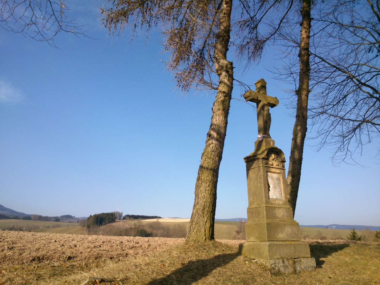 Jít k prameni Sovinky, to by dneska šlo, ale nevzal jsem si s sebou foťáček a na takovou cestu by bylo škoda vyrazit bez něj. Nu, tak bych mohl vyrazit vlakem do Martinic a podniknout druhý pokus o nalezení kamenného kříže... teoreticky by šlo putovat po lesích ani ne moc daleko a najít všechny tři, které tam jsou. To je nápad!