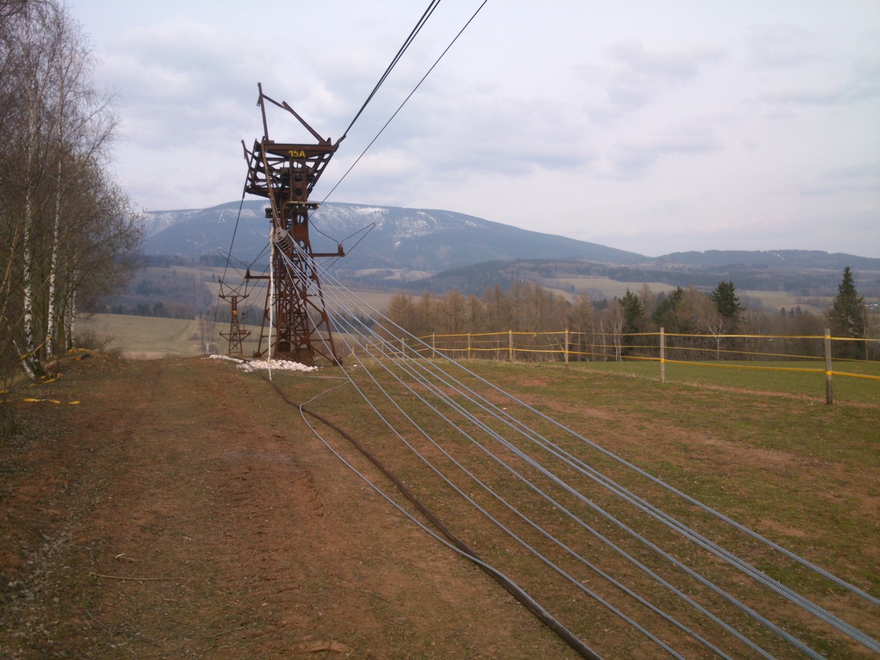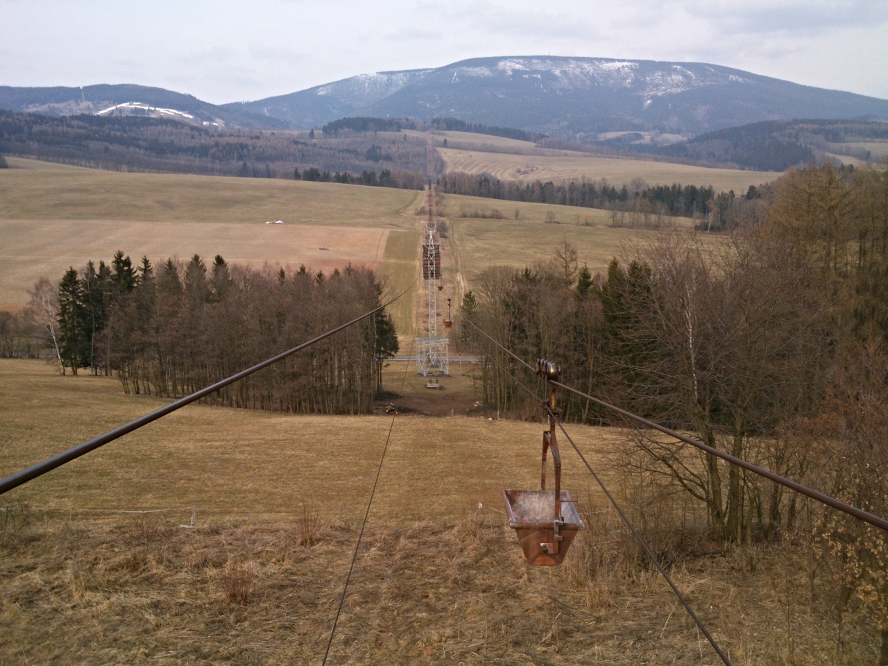 Zdá se, že lanovka prochází nějakou větší údržbou - nejvyšší a nejpozoruhodnější sloup celé lanovky - sloup č. 14 - je celý pečlivě natřený šedou barvou a o kus dál se zjevně vyměňuje nosné lano za nové.