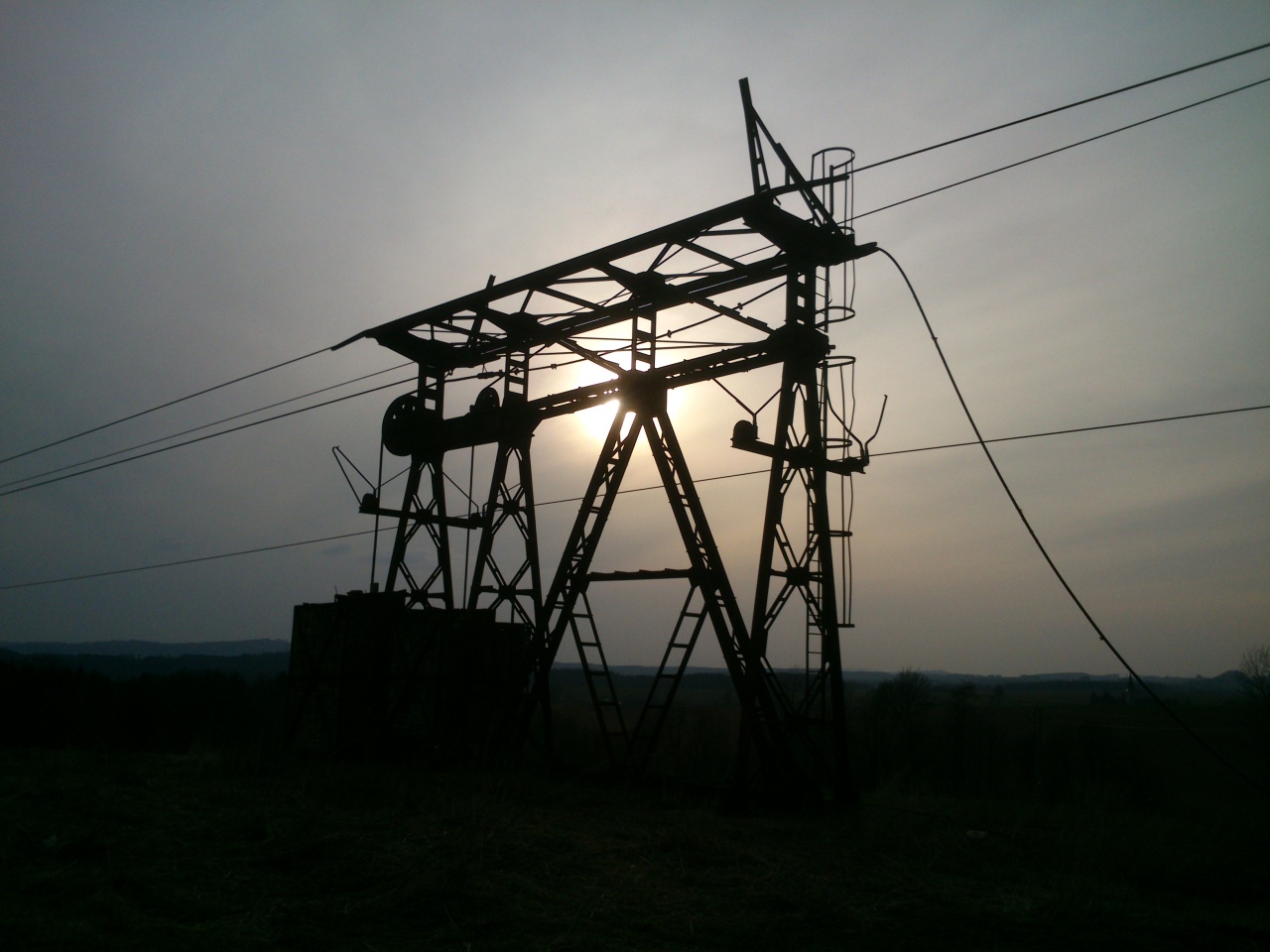 Na vrcholu sloupu č. 15 od nákladní lanovky z lomu v Černém Dole do vápenky v Kunčičích. Ten sice není vysoký, ale stojí na hraně kupce, proto je z něj pěkný výhled, kterému nosná lana lanovky dávají hloubku.