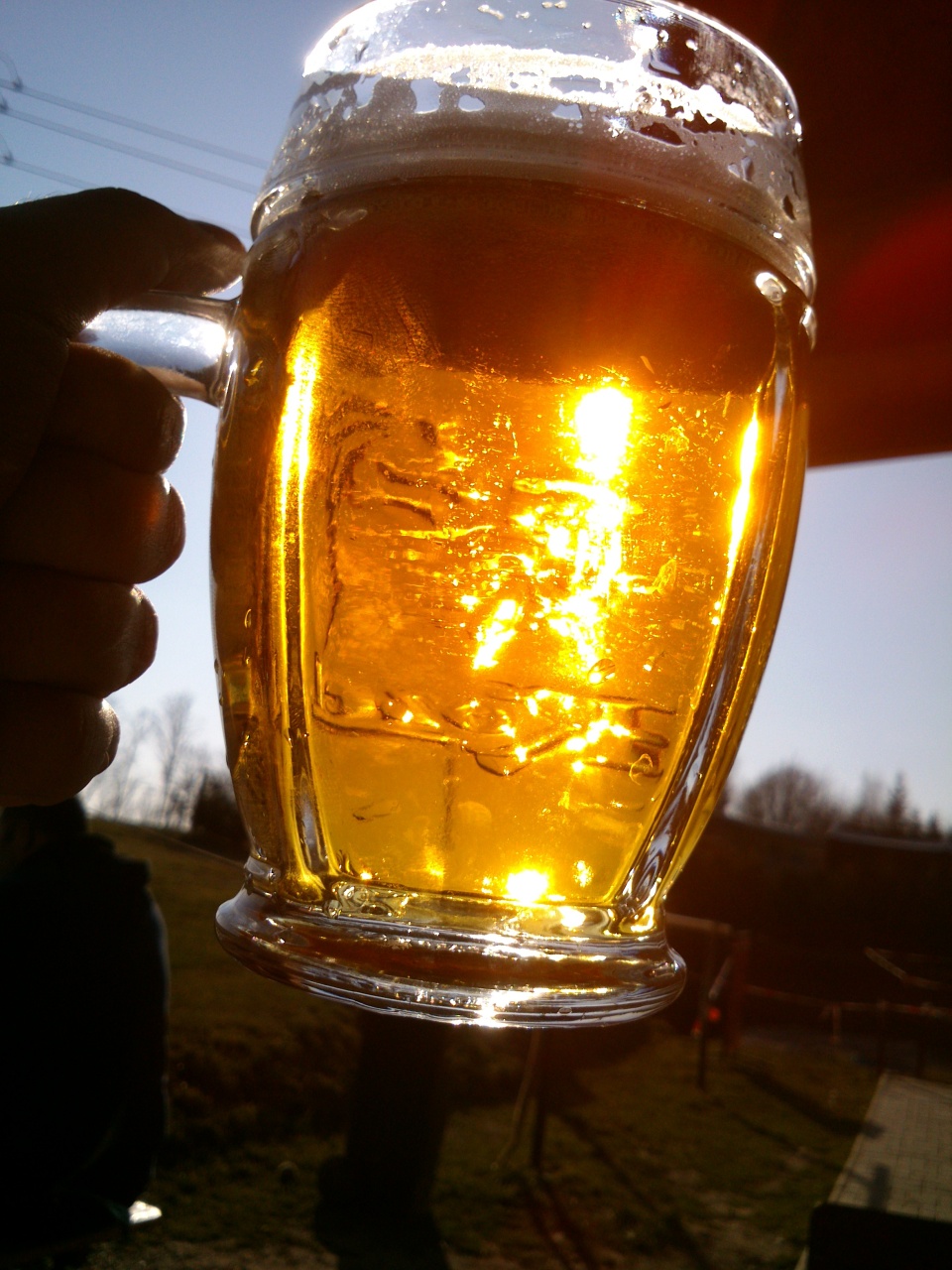 Přeběhnu údolí Principálku, přejdu louku, projdu lesem a kolem rybníka Kočvaráku, vystoupám podél berlínského lesa - a hurá, v hospůdce U Učíků už mají venkovní posezení. Hurá tam. Zatmění už sice dávno skončilo, ale takhle se kouká na sluníčko moc hezky.