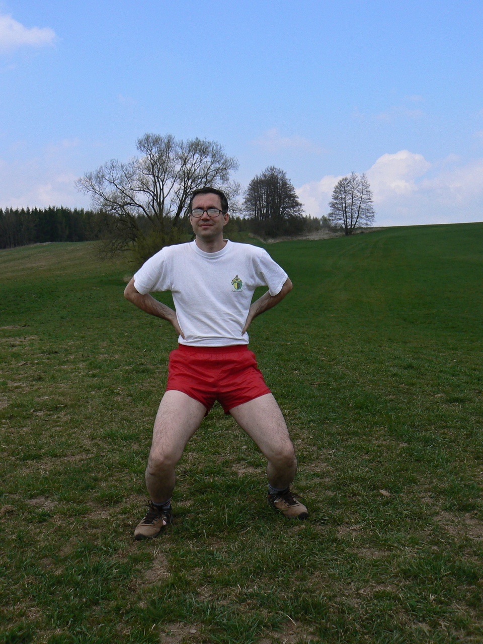 ...červené silonové trenýrky (dívky nosily modré bavlněné s gumičkami v nohavičkách) a bílé tričko. Originální ty moje trenýrky už samozřejmě nejsou - ani tričko - ale vypadají vzdáleně podobně.