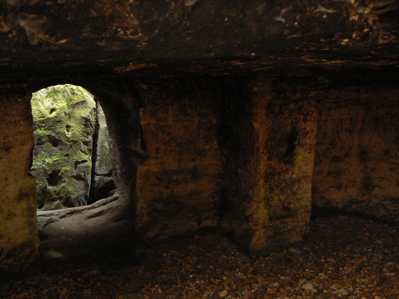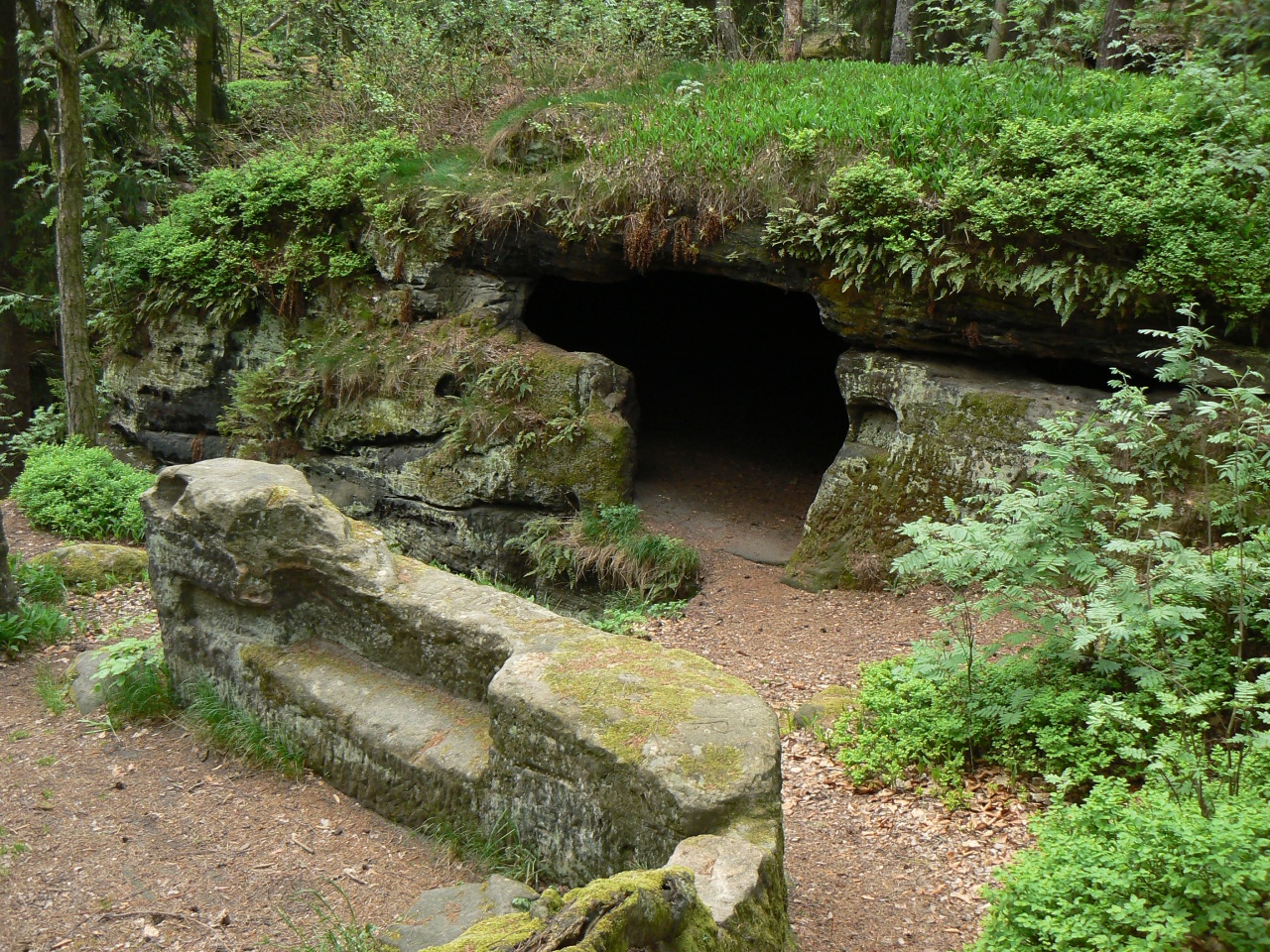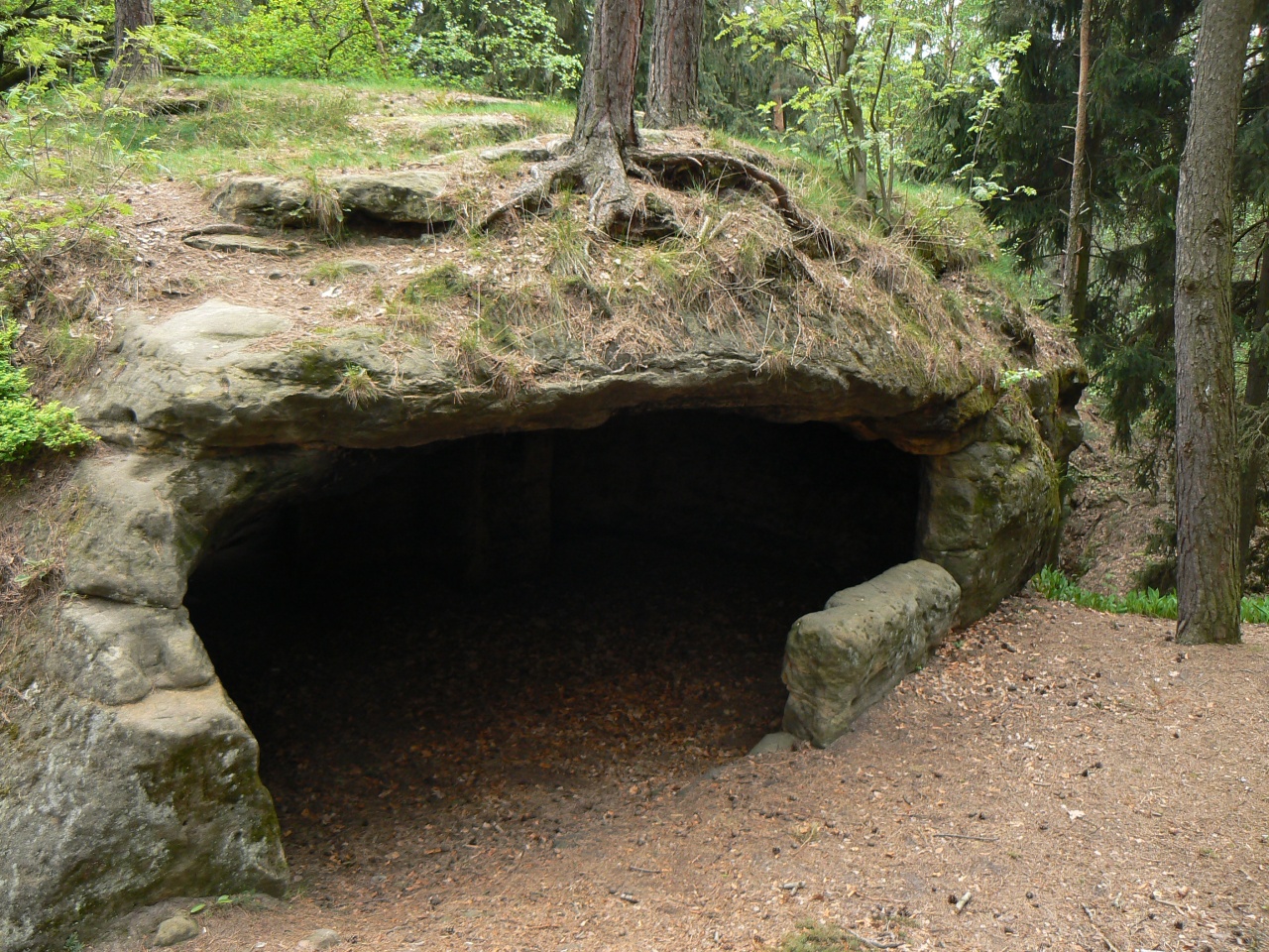 Dřevěné části Kozlova dávno shnily, zbyly však ve skále vytesané světničky.