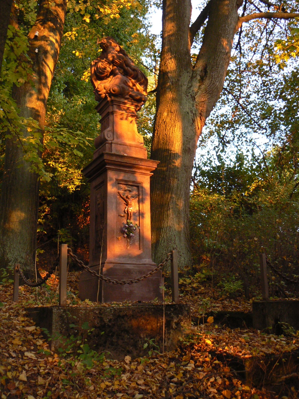 Naštěstí se dnešních dnů dožila na začátku parku krásná socha Panny Marie, která byla před několika lety pěkně opravená.
