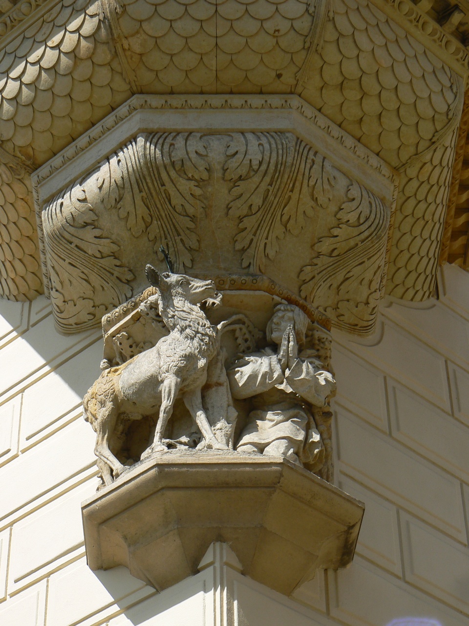 Ještě jednou obdivně pohlédneme na krásné architektonické ozdoby zámku - zdobené okno...