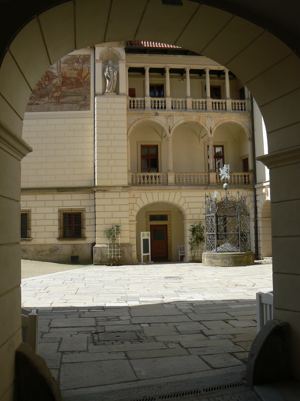 Podobně úžasná je i nástropní freska bohyně Diany v Loveckém salónu. Tu objevili při opravě štukového stropu v roce 1993, odkryli, krásně zrestaurovali - a dnes ji tak můžeme obdiovovat my všichni. No, obdivovat... kdyby ji bohyně Diana viděla, asi by pana malíře J. G. Hörtla neměla moc ráda. Když jsem tu fresku viděl, ani jsem se moc nedivil, že ji zabílili. Jinak je ale zámek plný krásných obrazů.