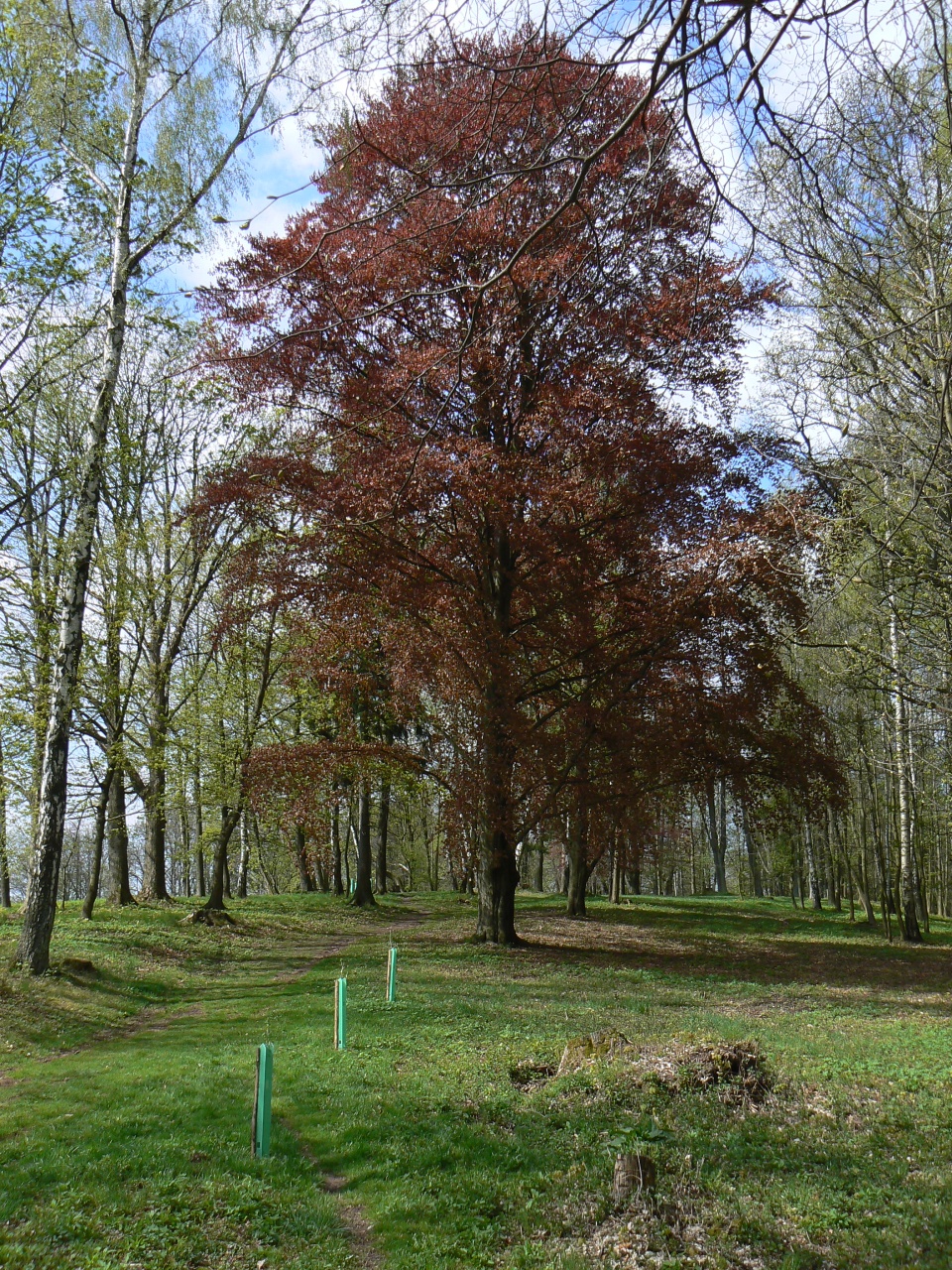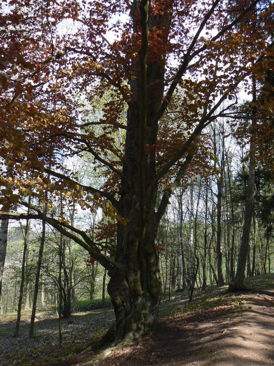 Tenhle starý červený buk určitě pamatuje založení parku. Naštěstí by moc nevynesl a proto tu zůstal.