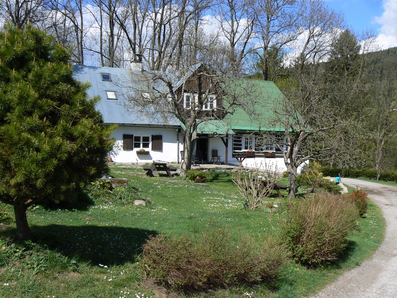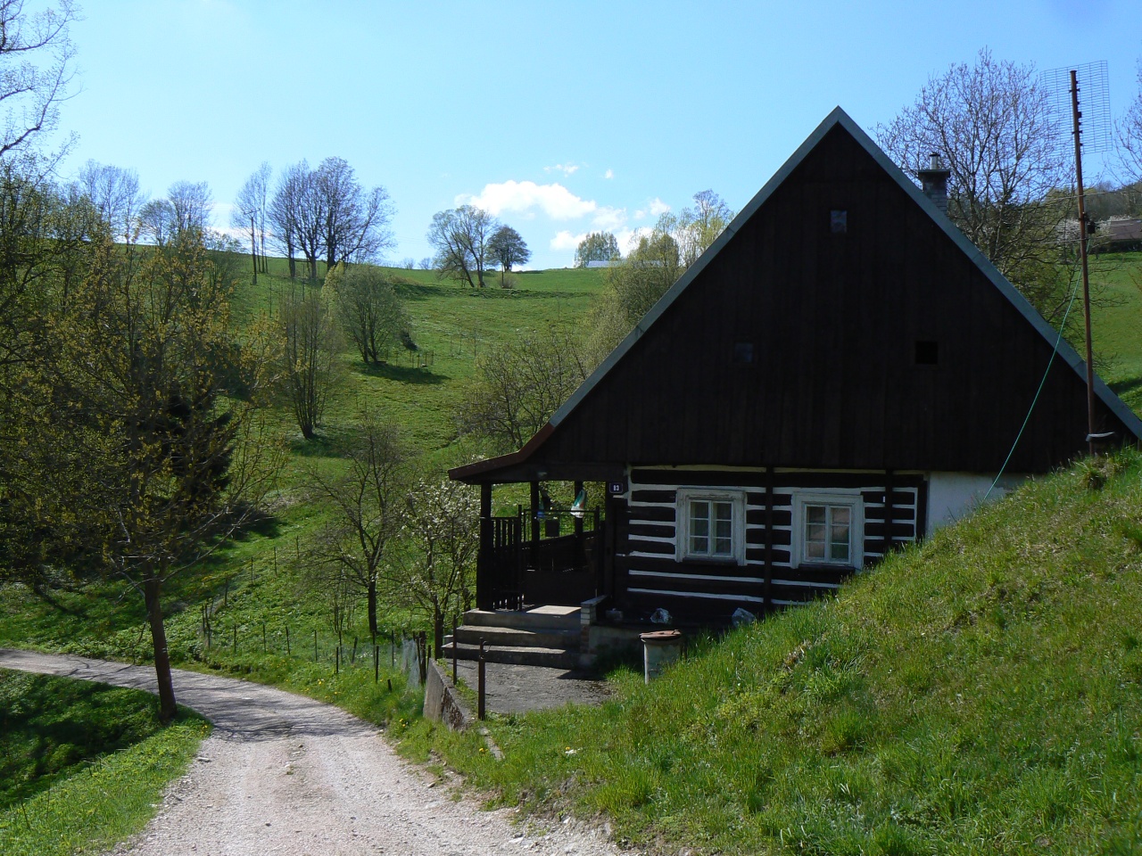 ...za kterým narazíme na zelenou značku a po ní se vydáme na cestu po úbočí Žalýho. Ta vede kolem dvou pěkných chaloupek.