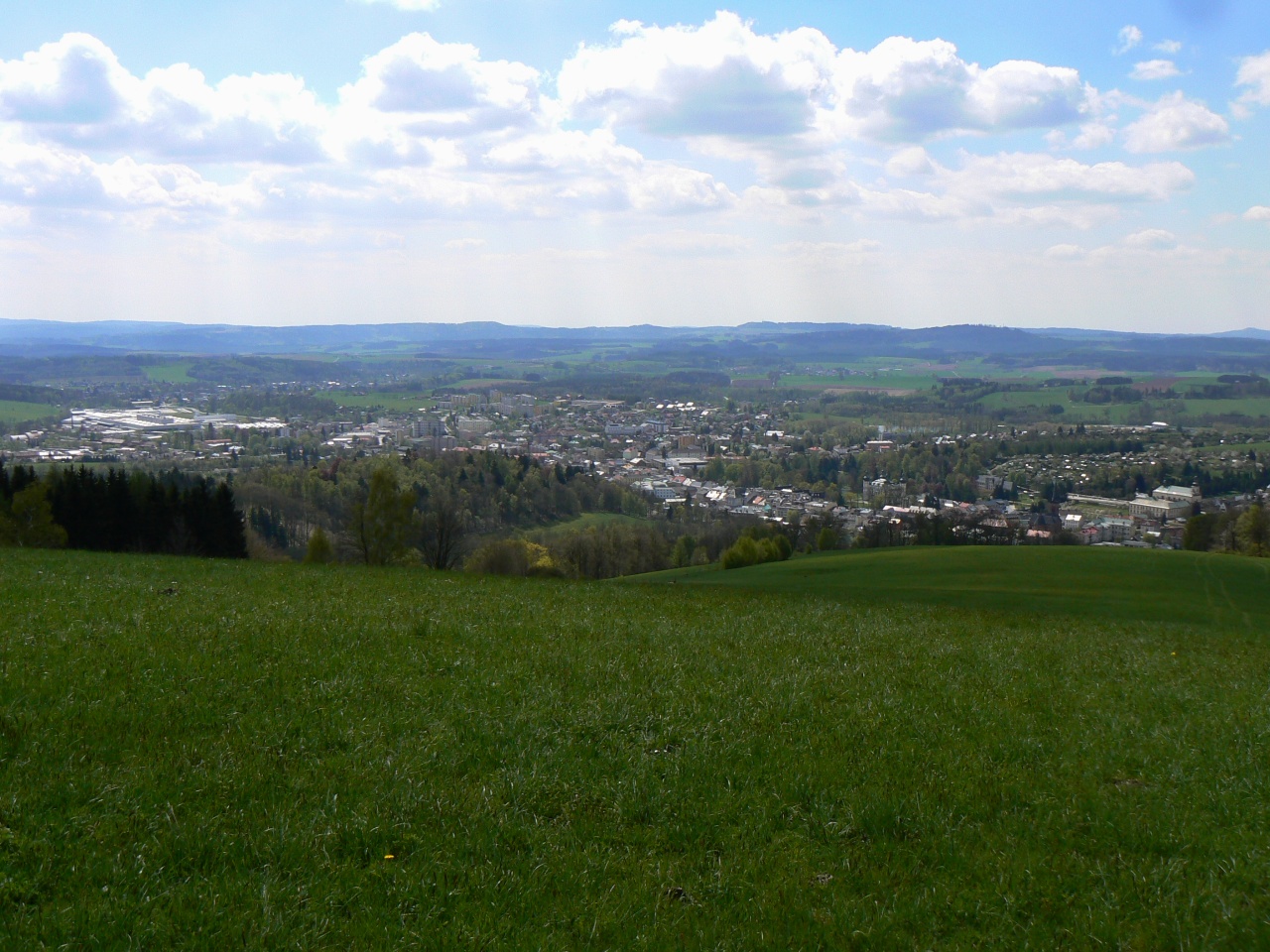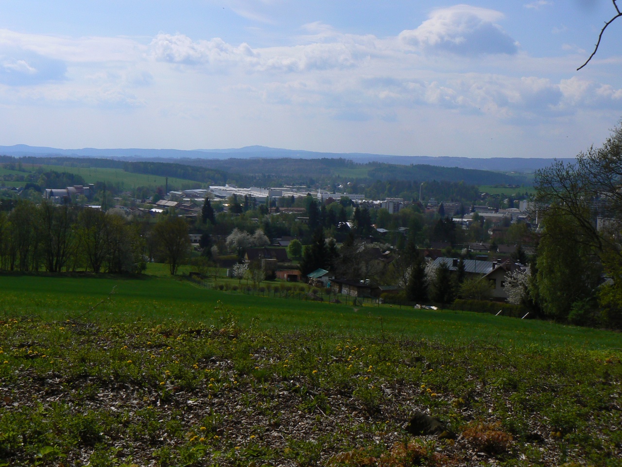 Od něho je výhled na jižní část Vrchlabí, jíž dominuje obrovský podnik Škoda Auto.