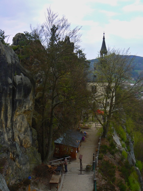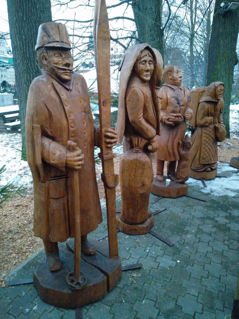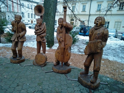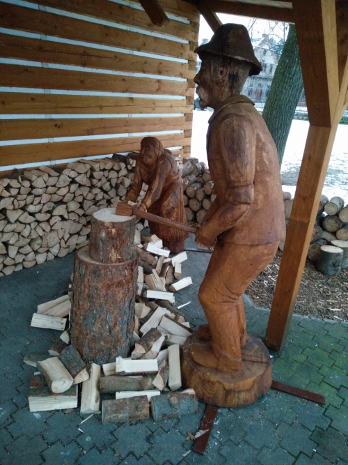 Nahoře mě krom architektury zaujme u mistra řezbáře figurka do betlému, o které si myslím, že je to tanečník. Už se po ní chystám vystartovat a koupit si jí, i kdyby stála nevím co... ale žel k tanečníkovi je tu ještě medvěd a ten je o poznání méně povedený, tak si nakonec nekupuju nic. Jen se postupně odshora zase vracím dolů a kupuju si ještě pěkné voňavé mýdlo a nakonec i nádherný adventní věneček z obchůdku s nádherným jménem Květinářství Markýtka.