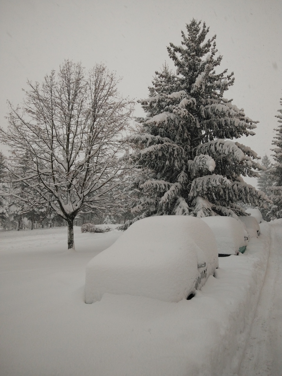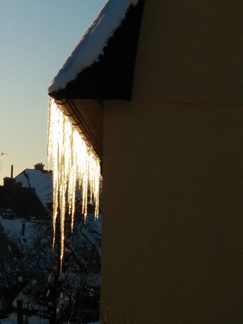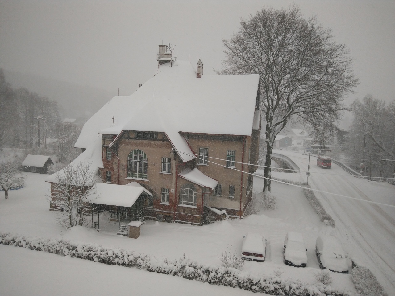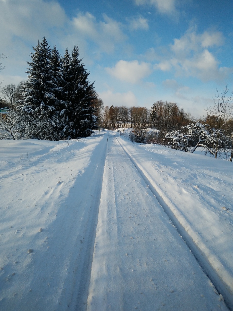 Když jsem šel třetího ledna z práce domů, bylo sněhem pocukrováno a šlo se hezky i podél Labe. Jenže pak se roztrhla peřina... a včera ráno mě a kolegyňku Petru čekala cesta snů... chodníky částečně nevypluhované, částečně na nich byl napluhovaný sníh ze silnice, postranní ulice sice vypluhované, ale hodně smeklavé... silničáři i Služby města Vrchlabí dělají co mohou, všechno je na nohou... ale nic proti síle živlů nezmůžou, jsou rádi, že udrží jakž takž průjezdné alespoň silnice.