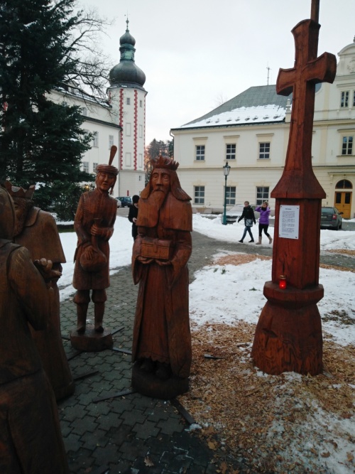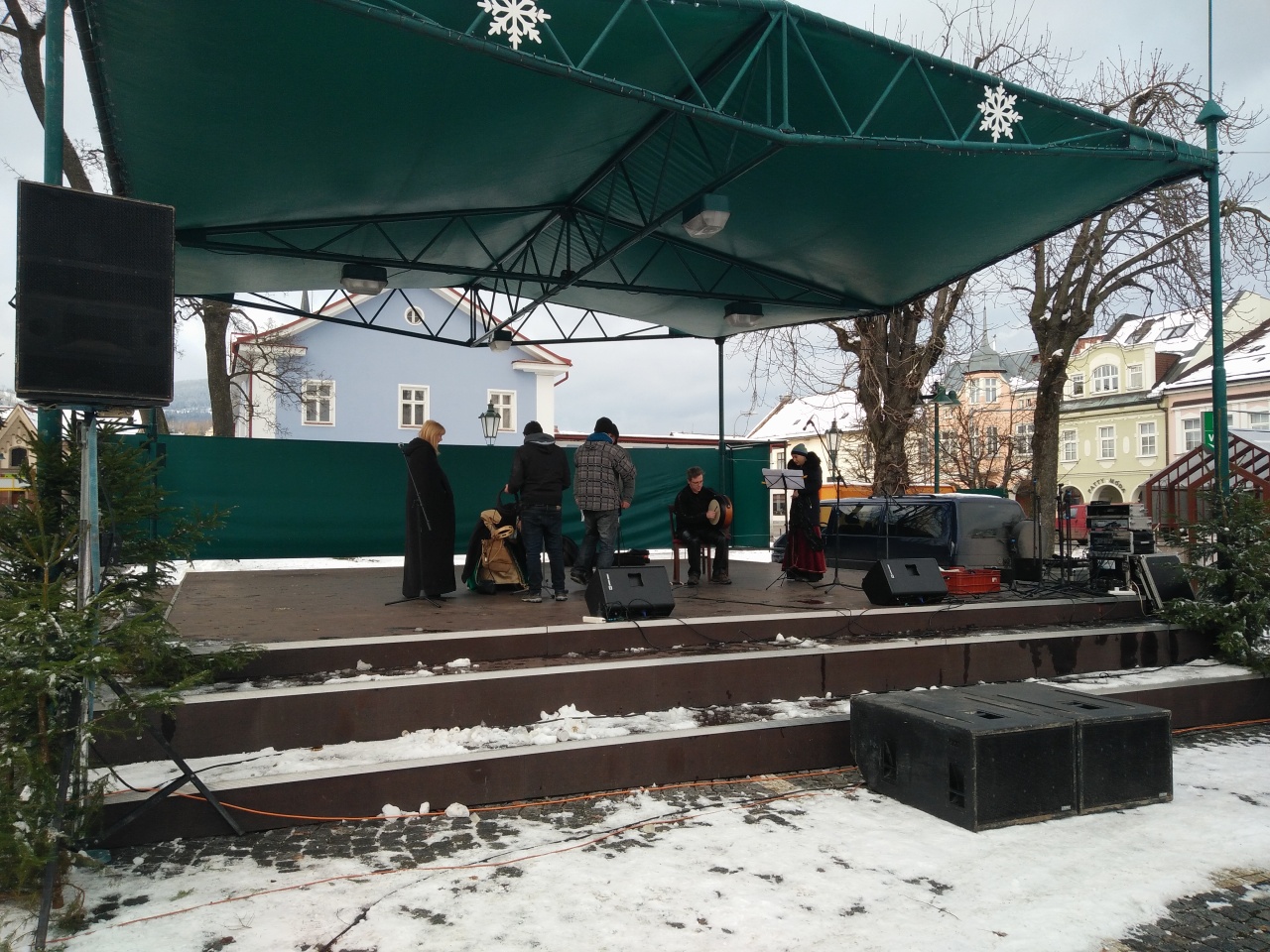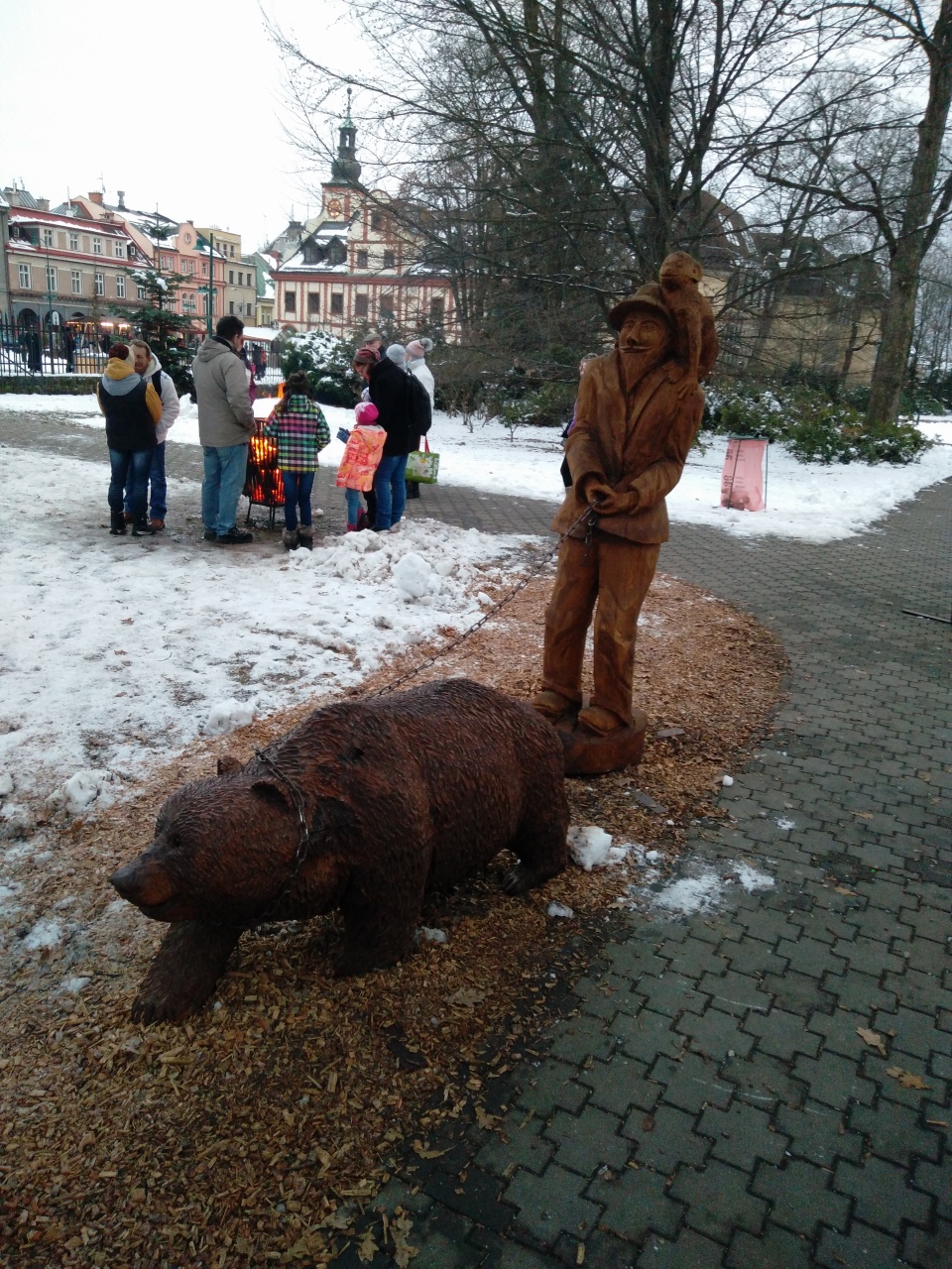 ERGO uteklo do tepla trochu se zahřát a na programu je teď nějaké loutkové divadlo pro děti. Tak ho dětem nechávám a mezi tím putuju jen o kousek vedle - tam, kde Zámecký park sousedí s náměstím a v kruhu stromů tam stojí Krkonošský betlém.