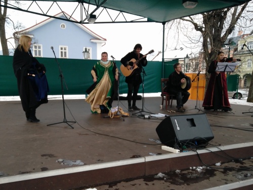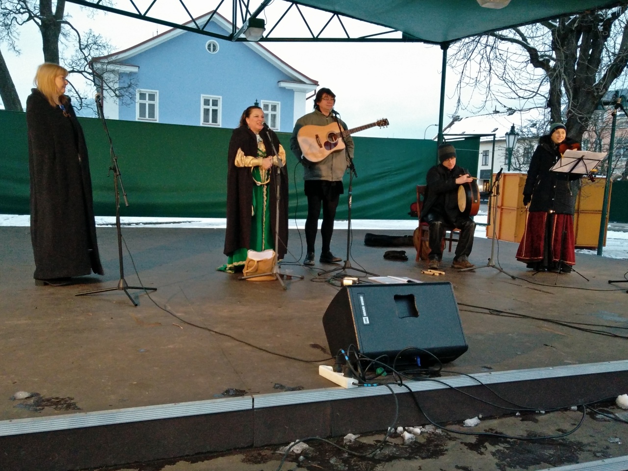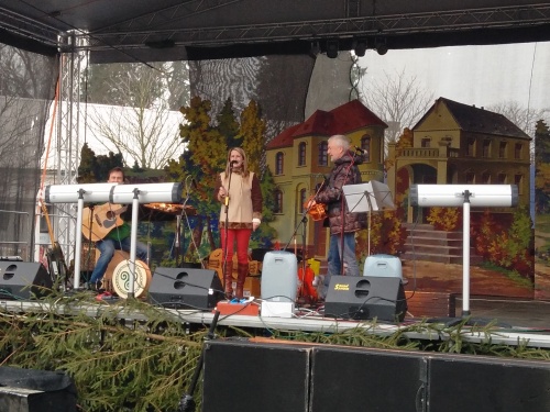 Tou ERGO své vystoupení končí, ale nikoliv svůj koncert - jen se teď utečou někam do tepla zahřát a od 16. hodiny budou hrát dál. Ale ještě než utečou si mnou chvíli moc mile a přátelsky povídají a to je pro mě obrovskou radostí. Chci si koupit od nich i jejich CD - ale to se dnes nepodaří, protože se Sabině podařilo zapomenout je doma. ERGO má dvě CD - starší Celtic Folk, ze kterého je i těch pět mých oblíbených písniček a novější Vítání deště. Obě mi je Sabina pošle poštou... a dočista vůbec nic za ně nechce, chce mi je dát jako vánoční dáreček. Moc vám děkuju, lidé milí, budu na vás vzpomínat s radostí, kdykoliv si je pustím.