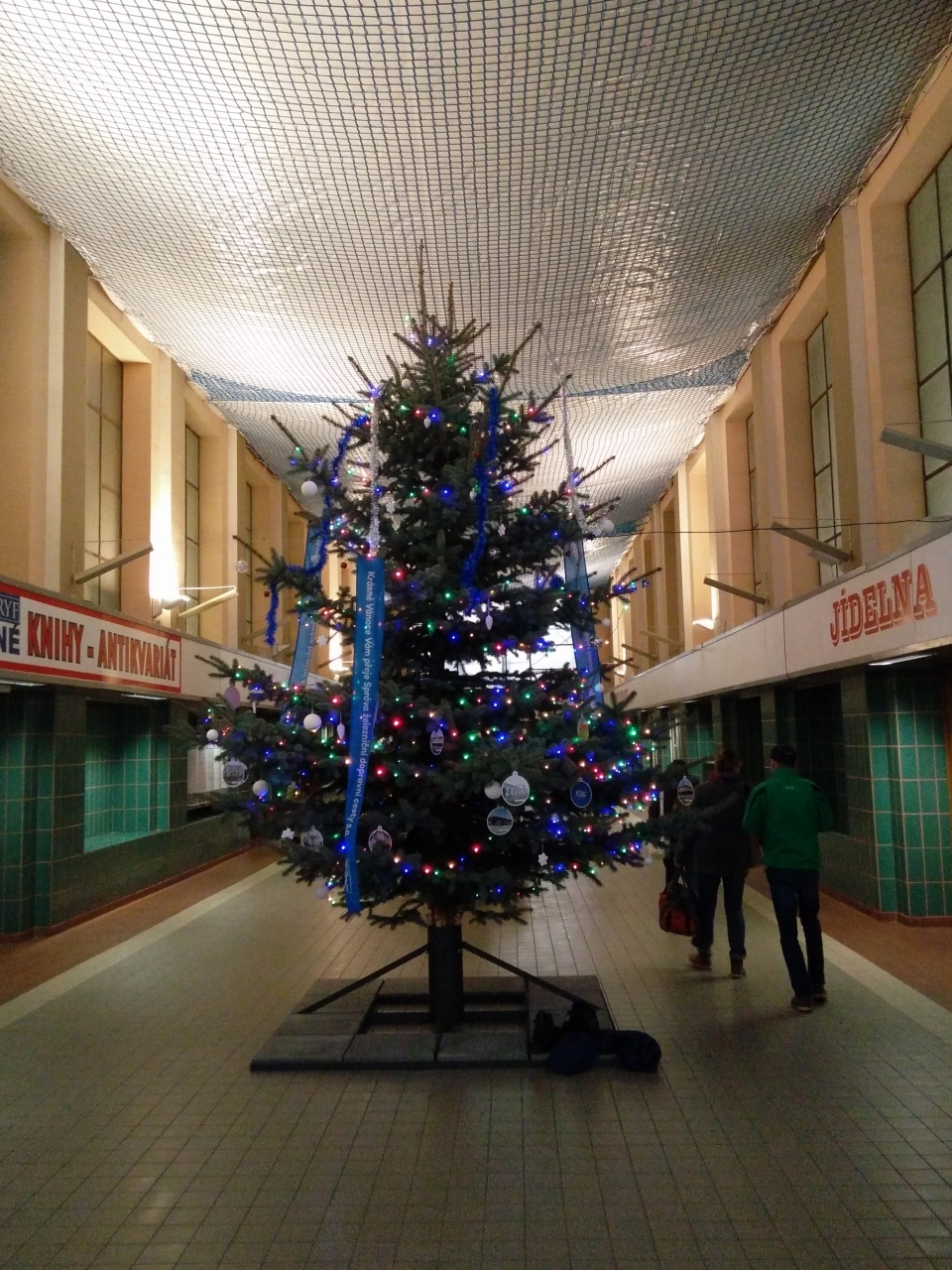Před ní už je živo... odkudsi z reproduktorů zní jedna vánoční koleda za druhou a vytváří pěknou atmosféru na malém jarmarku, jehož stánky naplnily nábřeží před muzeem. Prodává se tu hlavně jídlo... oříšky v cukrové polevě, nejrůznější koláčky a preclíky, horká medovina, punč i svařené víno, pečené buřtíky... ale nejvíc mě zaujmou mé osvědčené a moc a moc oblíbené „sejkory se sarakvajdou“. Ráno se mi nechtělo z pelechu, takže na snídani nebyl čas, mně teď kvílí v žaludku... tak si dávám dvojitou várku a pochutnám si báječně.
