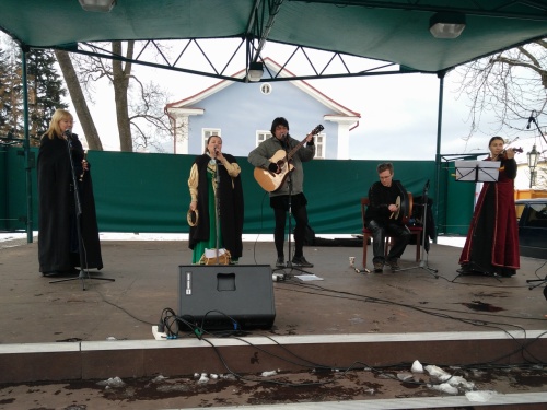 Kdysi mě totiž na CD s popisem většiny českých hradů, zámků i zřícenin zaujala kromě zmíněných památek i hudba, která k němu byla doplňkem. Pět písniček na něm hrála a zpívala novostředověká skupina jménem ERGO, dalších pět bylo od skupiny Musica da gamba, která však dnes už asi nehraje. Skupina ERGO však hraje pořád, zvesela a neúnavně a v září měla koncert na hradě Zvířetice. I když celý den pršelo, jen se lilo, koncert tam měla - ale já jsem na něm nebyl, ač jsem se na něj chystal a těšil, protože mě sklátily viry a bakterie. Dneska je mi však velmi dobře, venku je sice zima, ale jinak docela hezky... a navíc mě nečeká ani žádná dlouhá cesta, protože ERGO bude hrát u nás na náměstí.