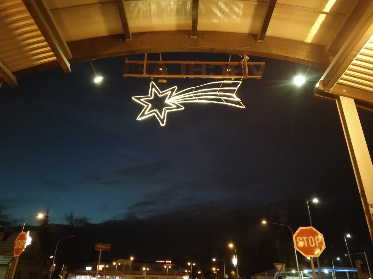 Ještě chvíli poslouchám u vchodu kapelu, hrající vánoční koledy a písničky a co znám, to si s nimi polohlasně zpívám... pak se však už přibližuje čas a proto se vydávám na cestu zpátky k vlakovému nádraží a poté k rozlehlému a pěknému autobusovému nádraží. Tam najdu správnou zastávku... a po pár minutách čekání už sedím v autobusu, který mě známými i neznámými ulicemi Hradce unáší vstříc Opočnu. Než se však vymotáme z Hradce, usnu jako špalek a probudím se s úlekem... ale naštěstí se neprobouzím až v Dobrušce na konečné, do Opočna to ještě kousek cesty je... tak ještě chvilku poklimbávám, ale v Opočně už jsem bdělý a z autobusu vyskakuju na správném místě - rovnou na náměstí, kde se dnes bude konat velký mikulášský rej.
