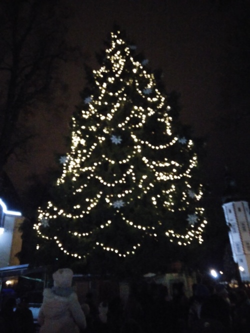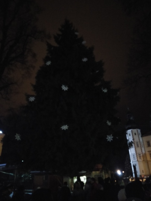 A pak už se vše ztiší a v těžišti stovek pohledů se ocitne náš vánoční strom, který spokojeně roste přímo na náměstí po celý rok.